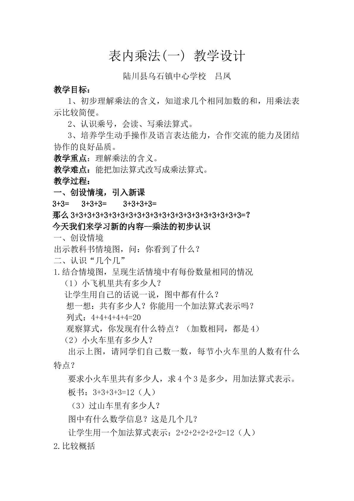 表内乘法(一)教案内容设计一: