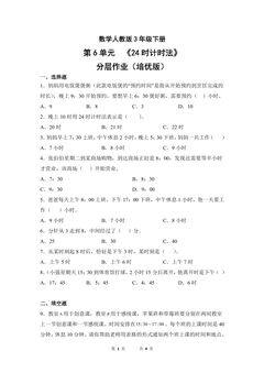 数学人教版3年级下册第6单元6.2 24时计时法分层作业(培优版)
