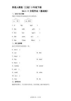 英语人教版(三起)3年级下册Unit 3 分层作业(基础版)