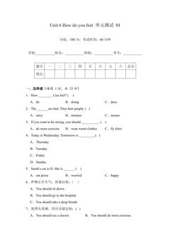 Unit 6 How do you feel 单元测试 01—人教PEP版(2024)英语6年级上册