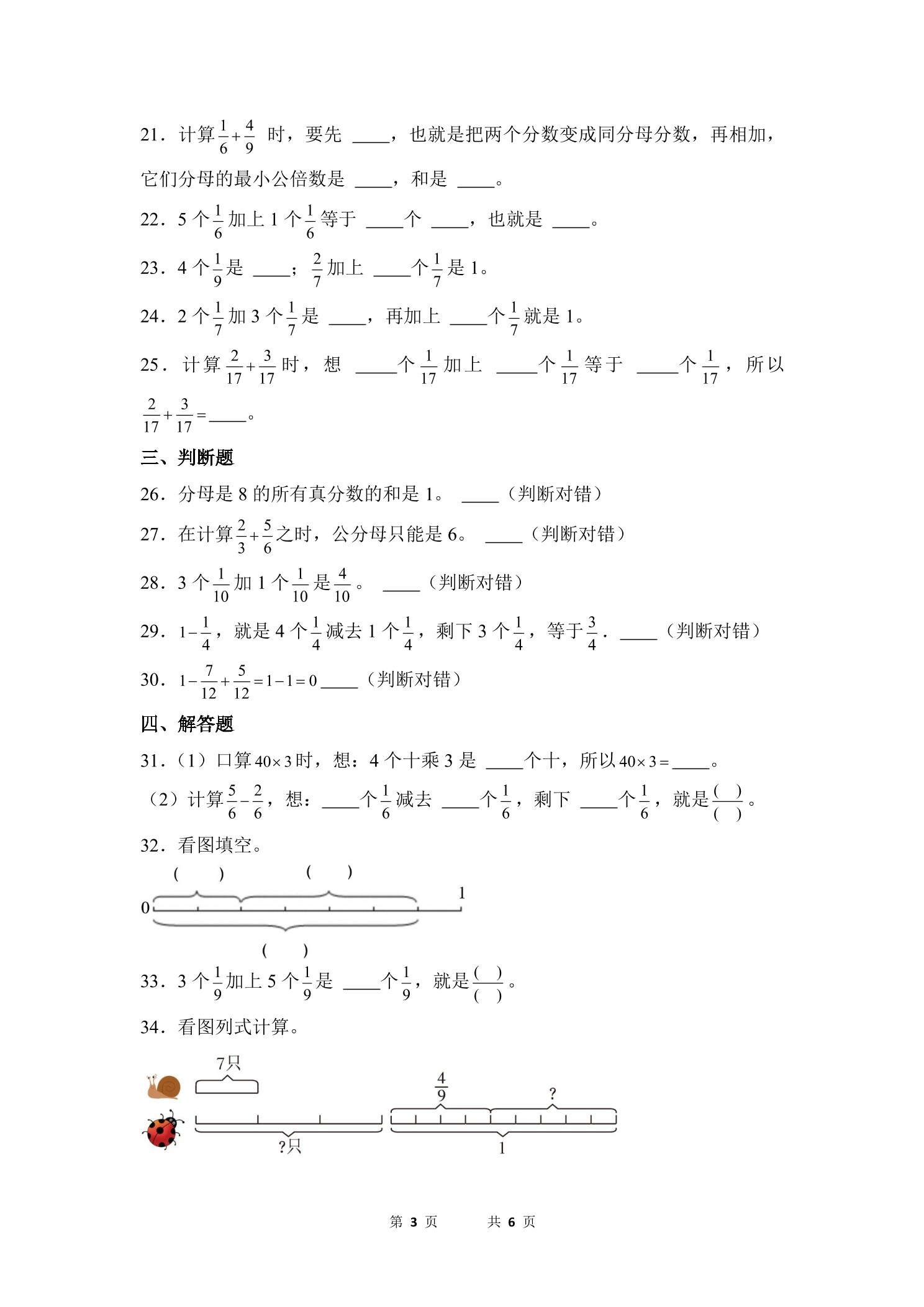 数学人教版5年级下册第6单元 6.3.2分数的加法和减法分层作业(基础版)