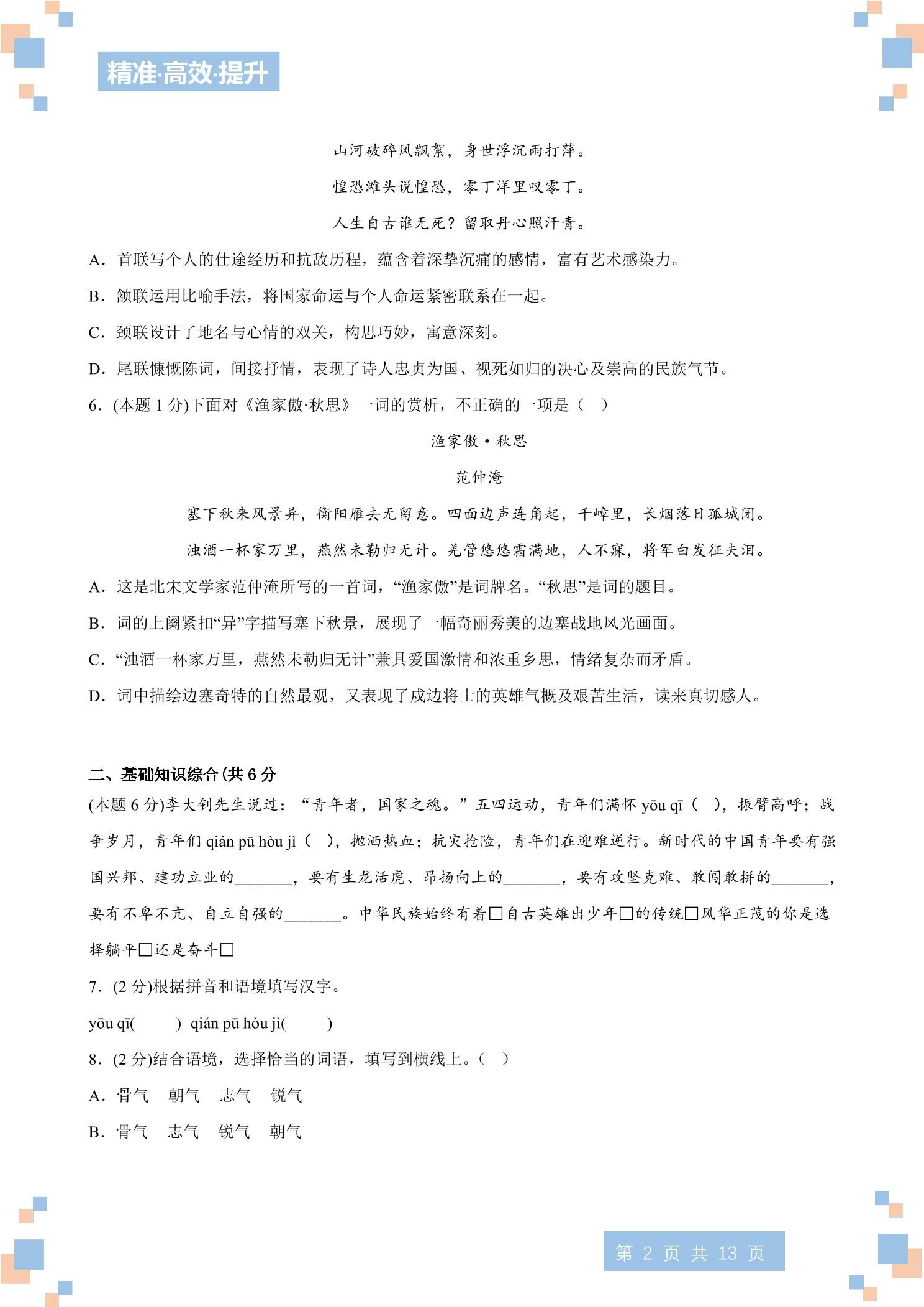 部编版语文8年级下册【期中测试AB卷】·A基础测试