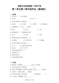 道德与法治部编版1年级下册第1单元第3课分层作业(基础版)