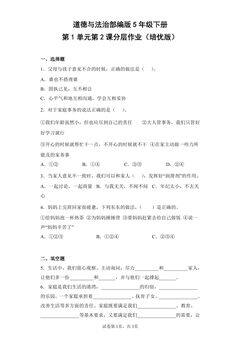 道德与法治部编版5年级下册第1单元第2课分层作业(培优版)