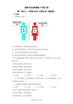 道德与法治部编版7年级下册第1单元2.1《男生女生》分层作业(基础版)
