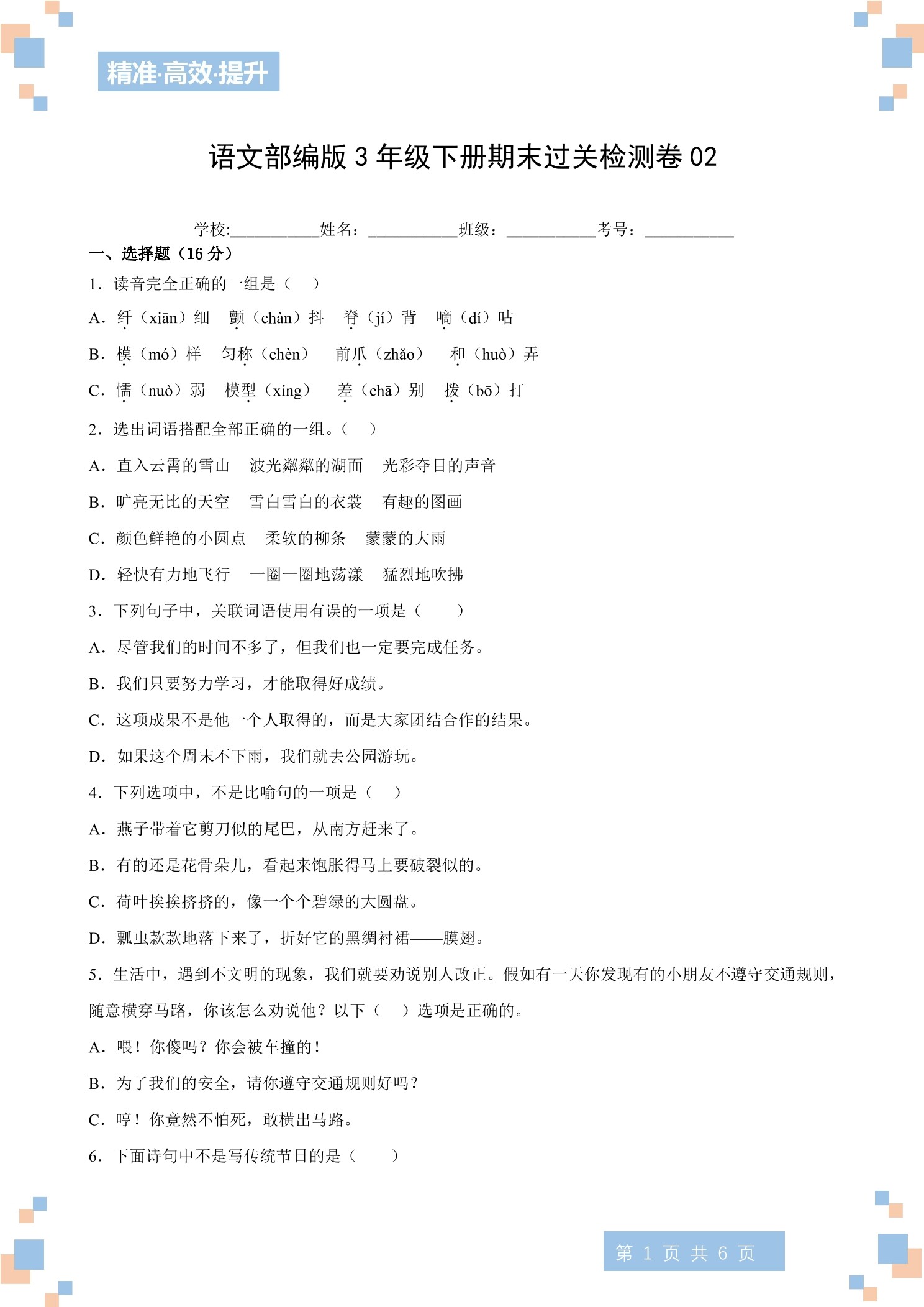 语文部编版6年级下册【新题速递】第3期02