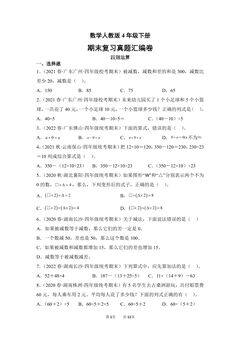 数学人教版4年级下册期末复习真题汇编卷01四则运算