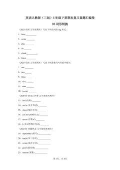 英语人教版(三起)5年级下册期末复习真题汇编卷03词形转换