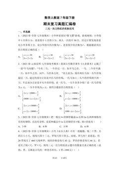 数学人教版7年级下册期末复习真题汇编卷05二元一次方程组的实际应用