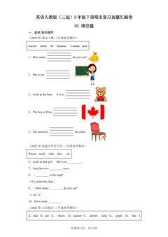 英语人教版(三起)3年级下册期末复习真题汇编卷03填空题