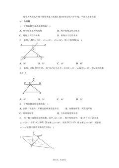 数学人教版七年级下册期末复习真题汇编03相交线与平行线、平面直角坐标系