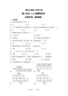 数学人教版3年级下册第2单元2.2笔算除法分层作业(基础版)