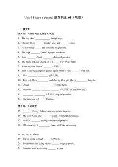 Unit 4 I have a pen pal 题型专练 05(填空)—人教PEP版(2024)英语