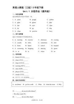 英语人教版(三起)5年级下册Unit 1 分层作业(培优版)