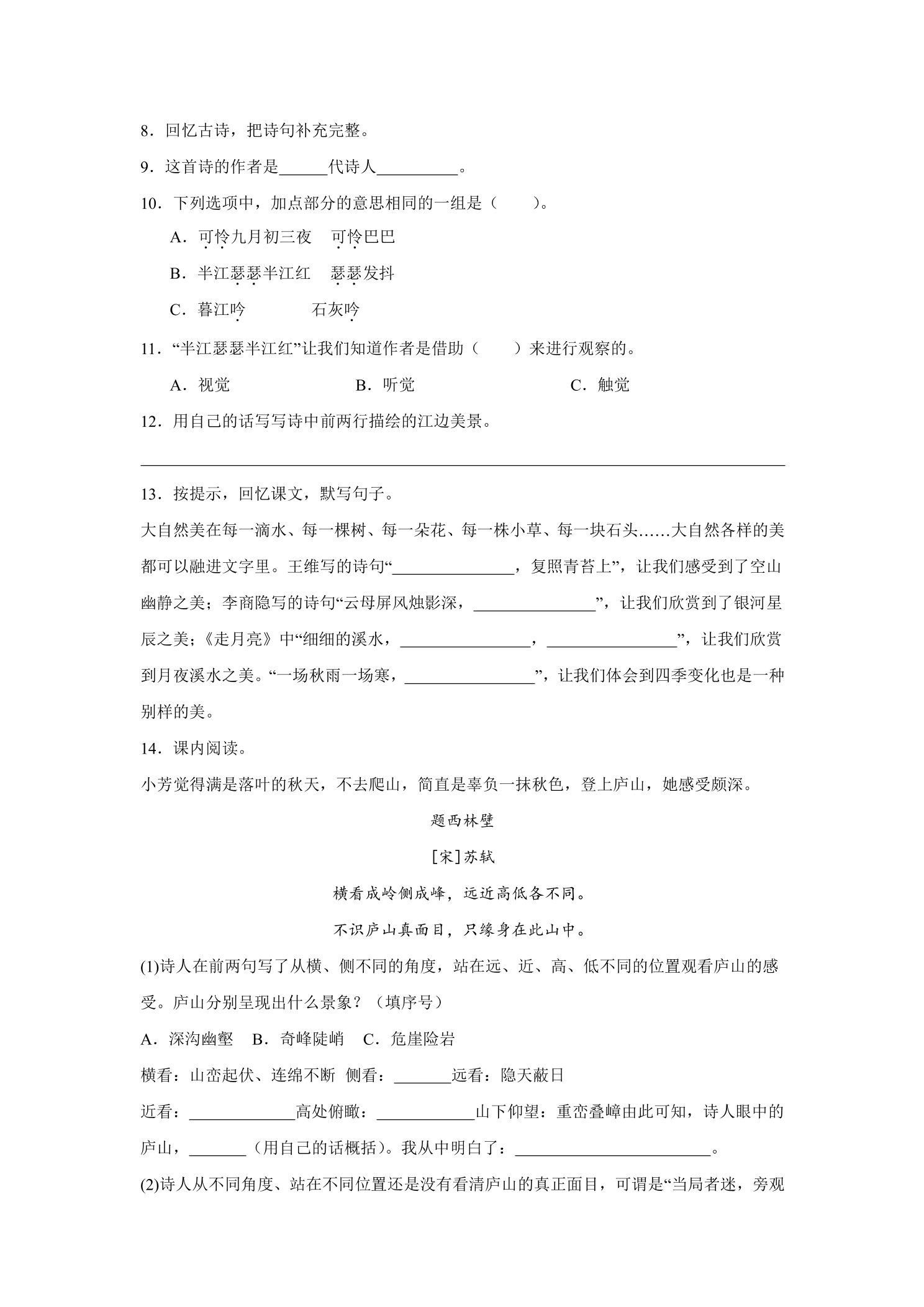 第2单元 闯关必刷03 课文内容与积累运用-统编版语文4年级上册