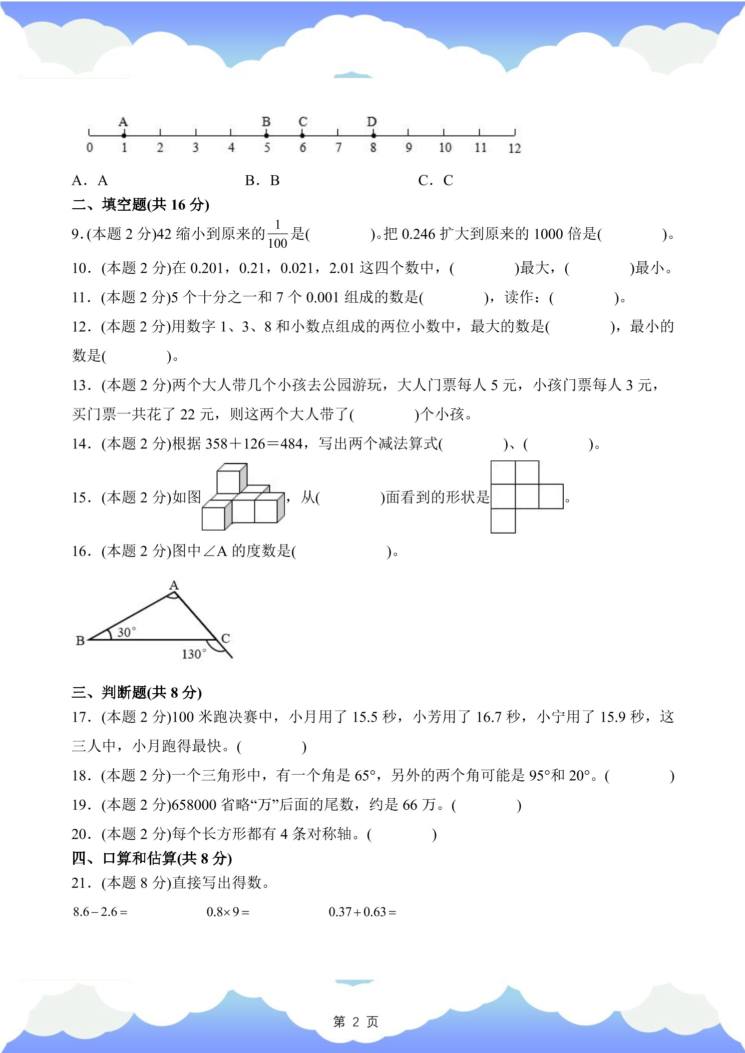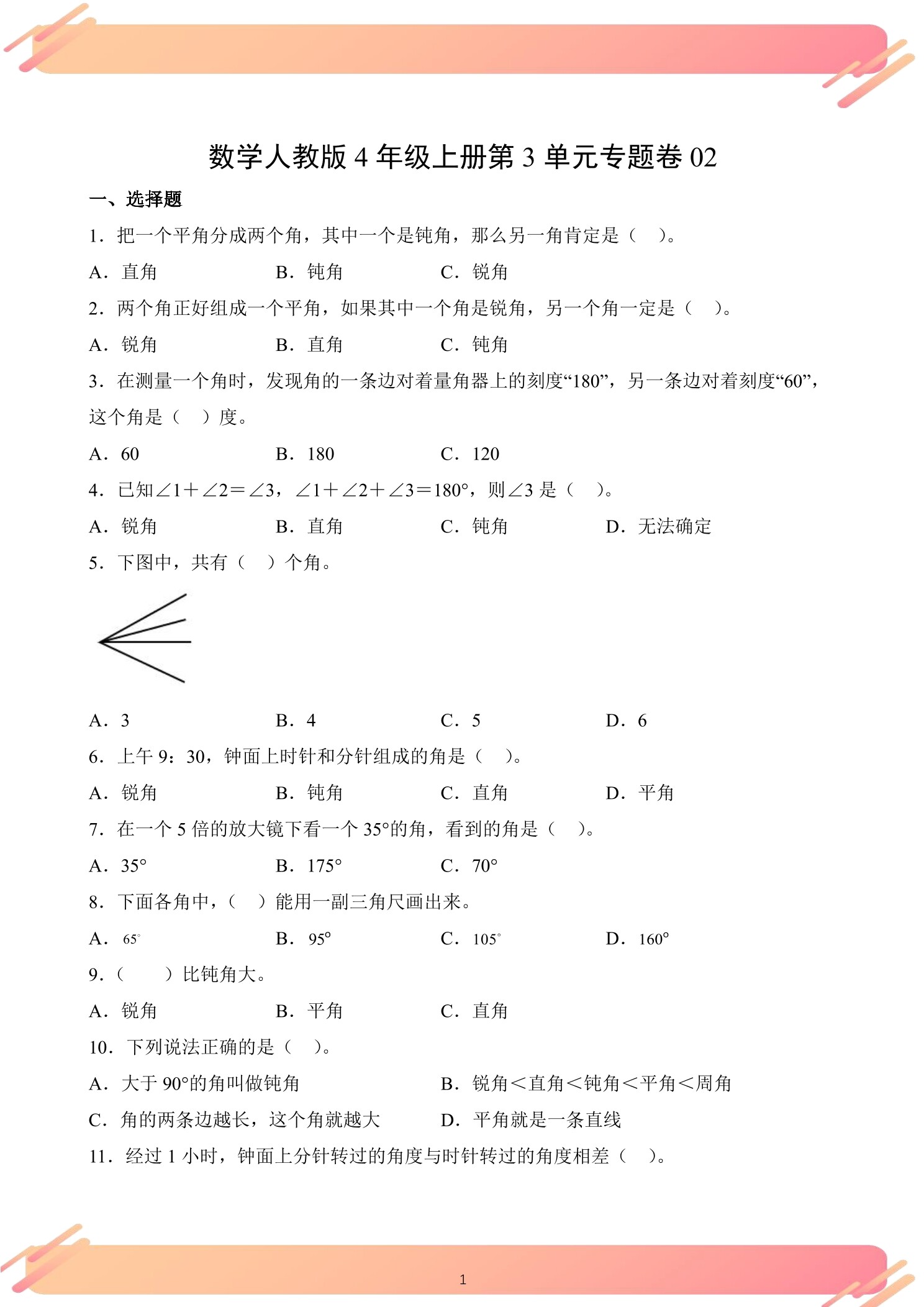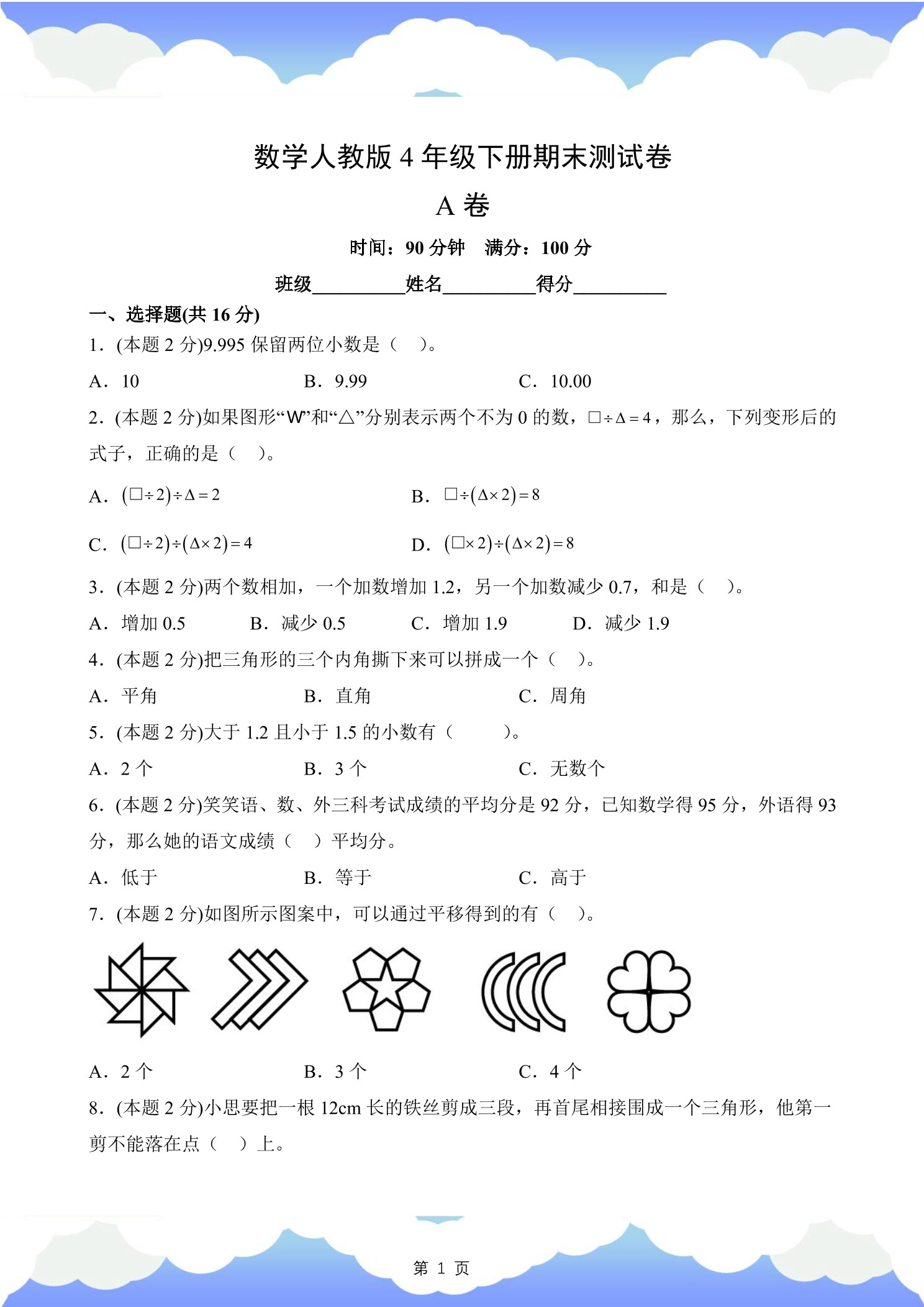 数学人教版4年级下册第7单元【分层单元卷】A基础测试