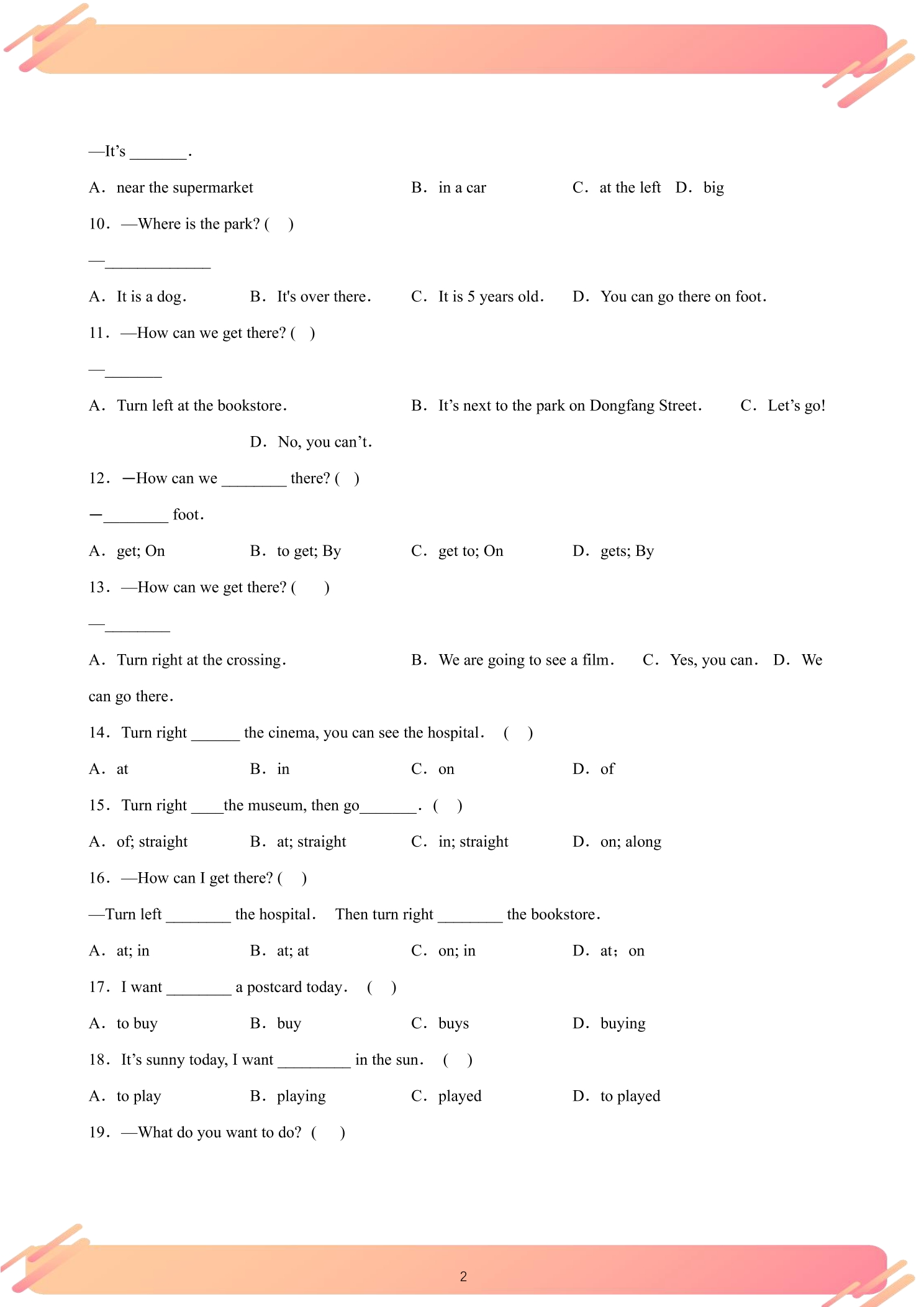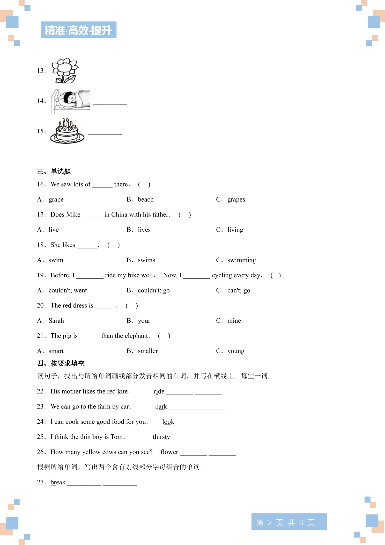 英语人教版(三起)5年级下册Unit 2 分层作业(培优版)