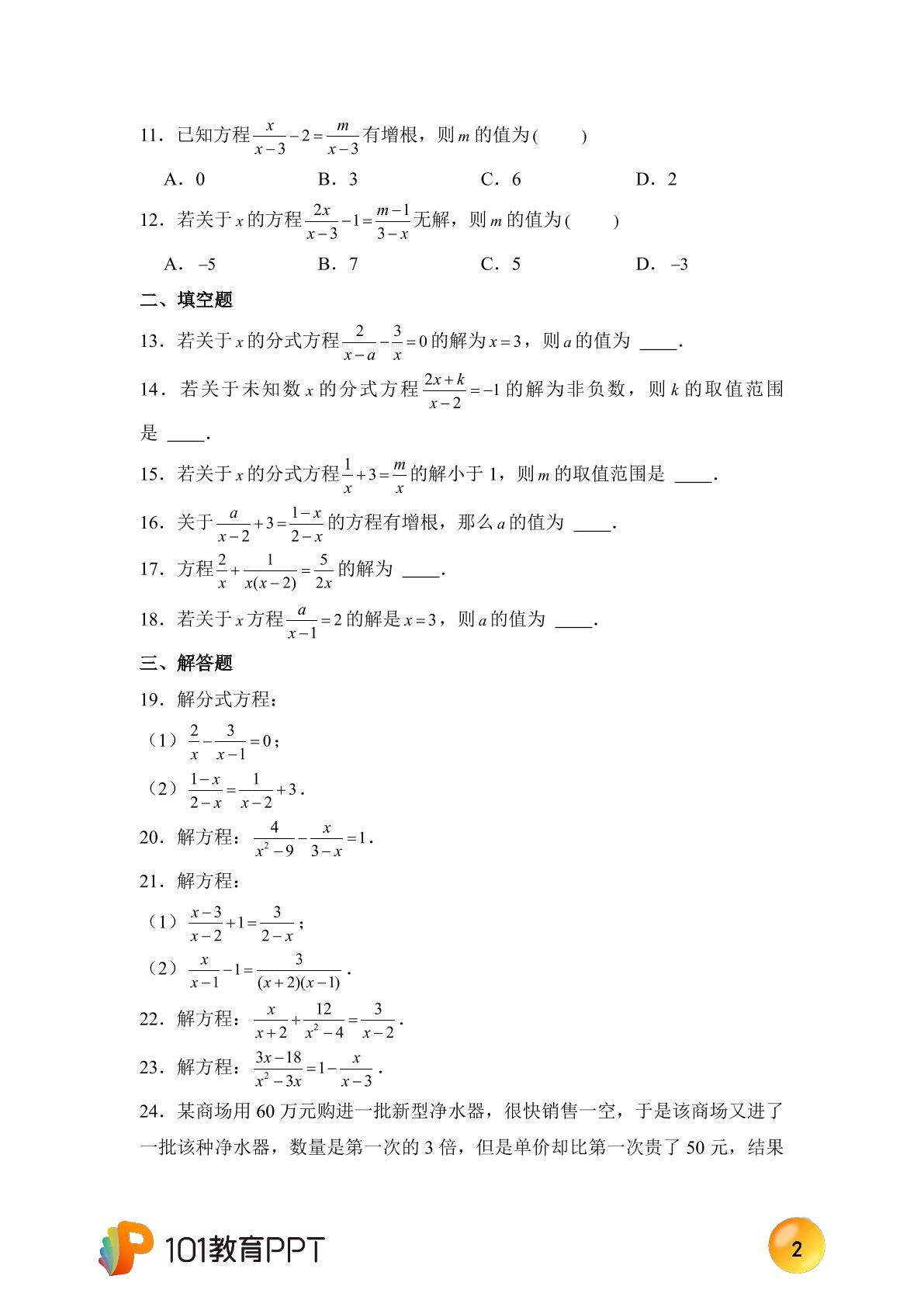 第15章 分式-章末测试-黄金讲练:8上数学人教版同步课堂(精练)