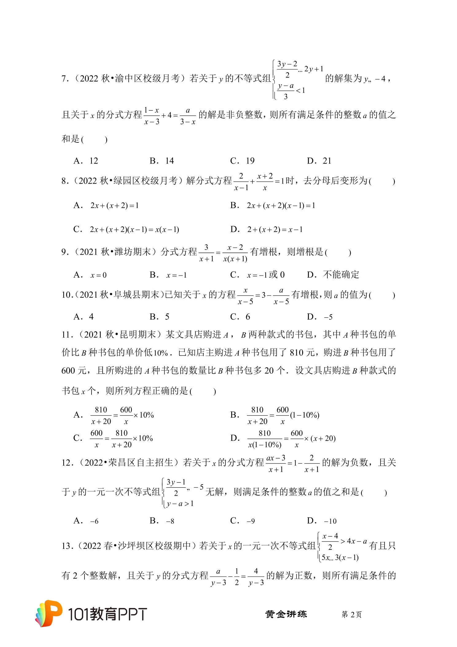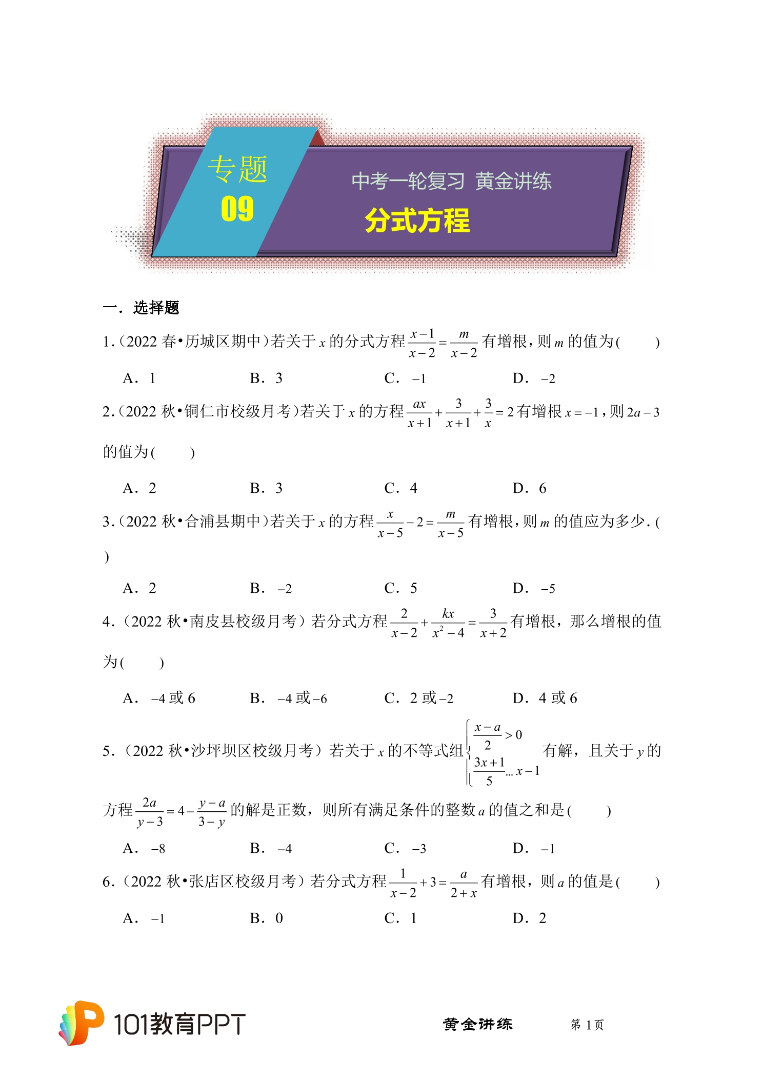 考点09 分式方程-黄金讲练:中考一轮复习数学(精练)