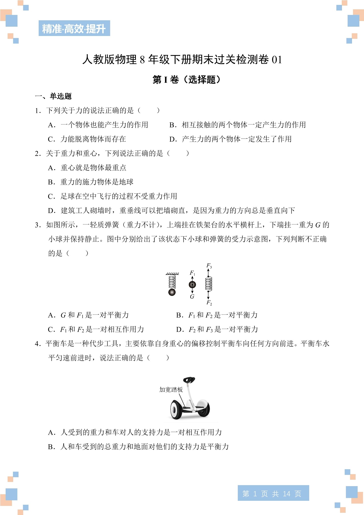 物理人教版8年级下册第七章第3节重力分层作业(培优版)
