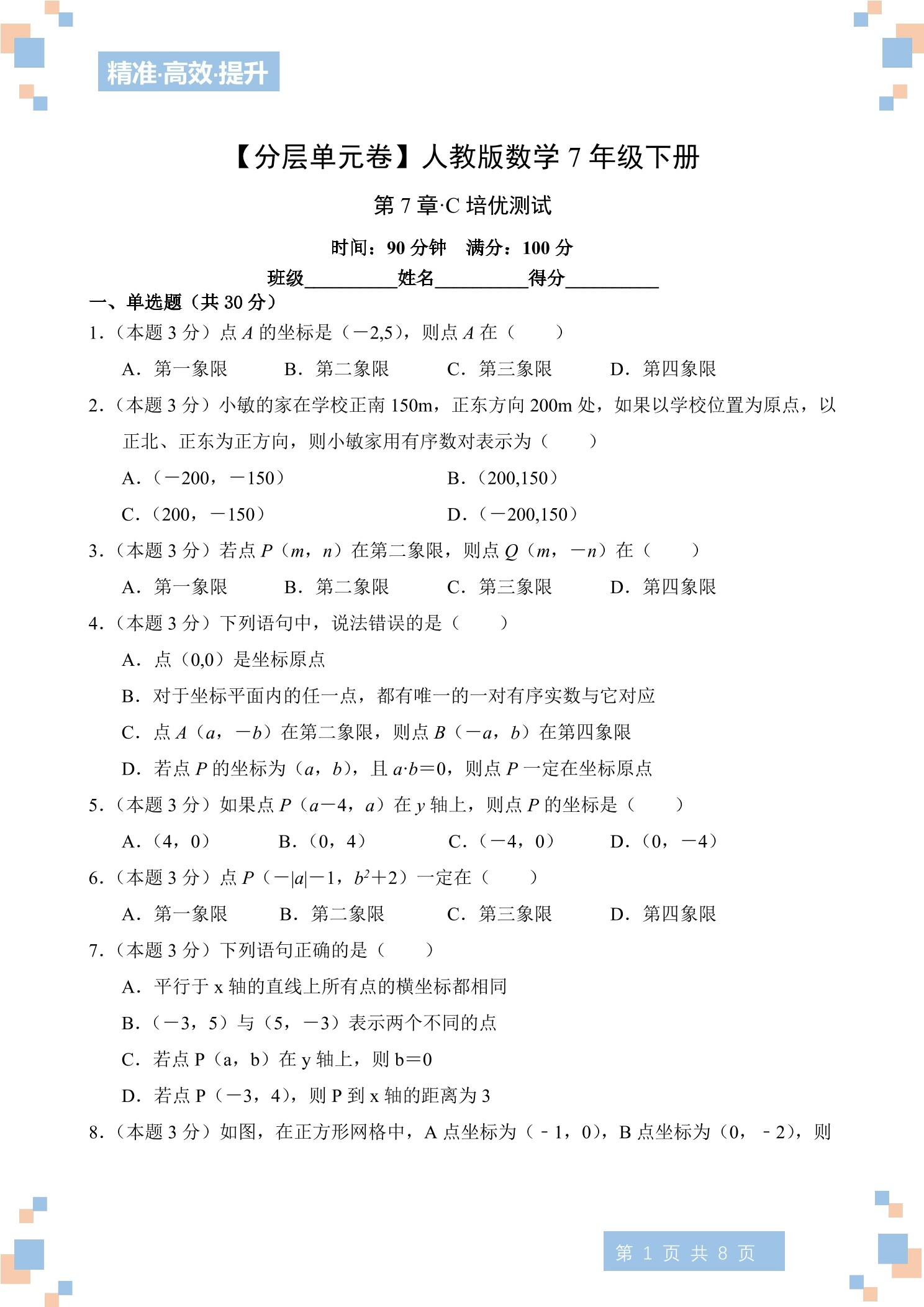 数学人教版7年级下册第7章【分层单元卷】·C培优测试