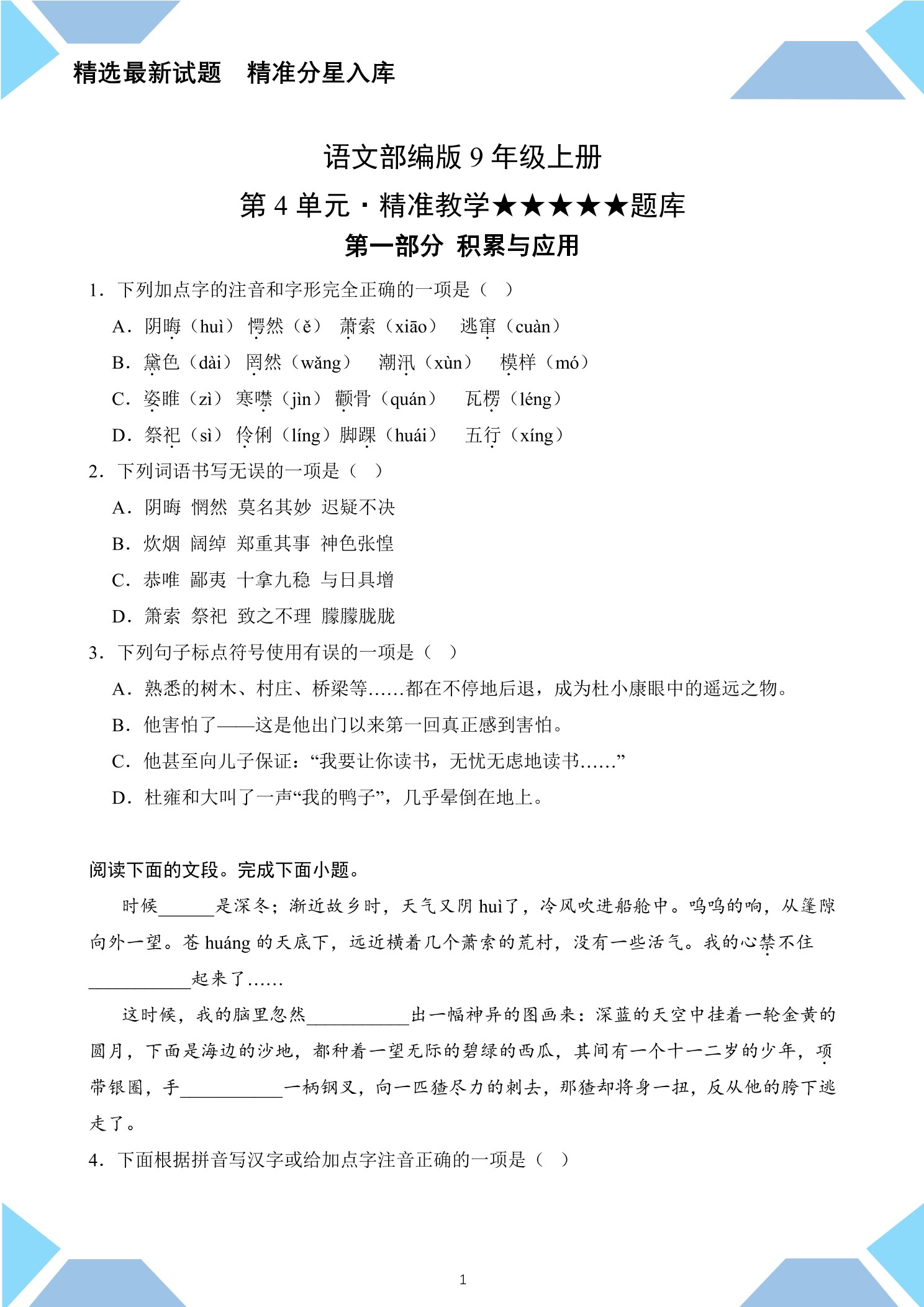 第3单元 闯关必刷04 课内阅读-统编版语文4年级上册