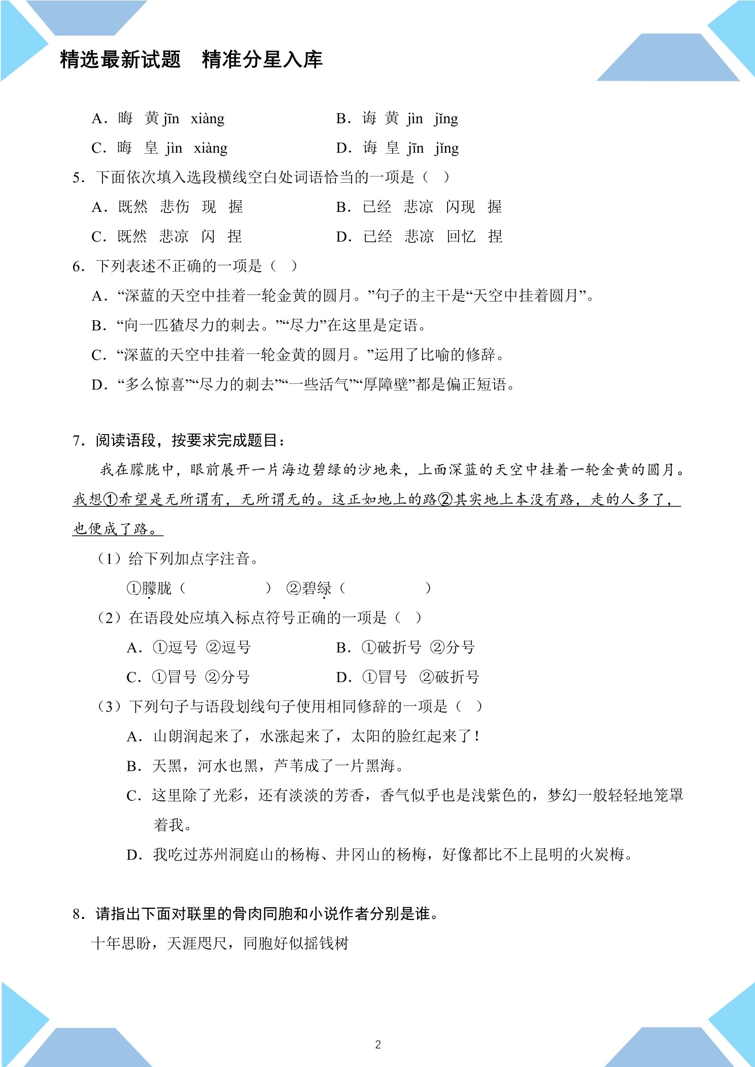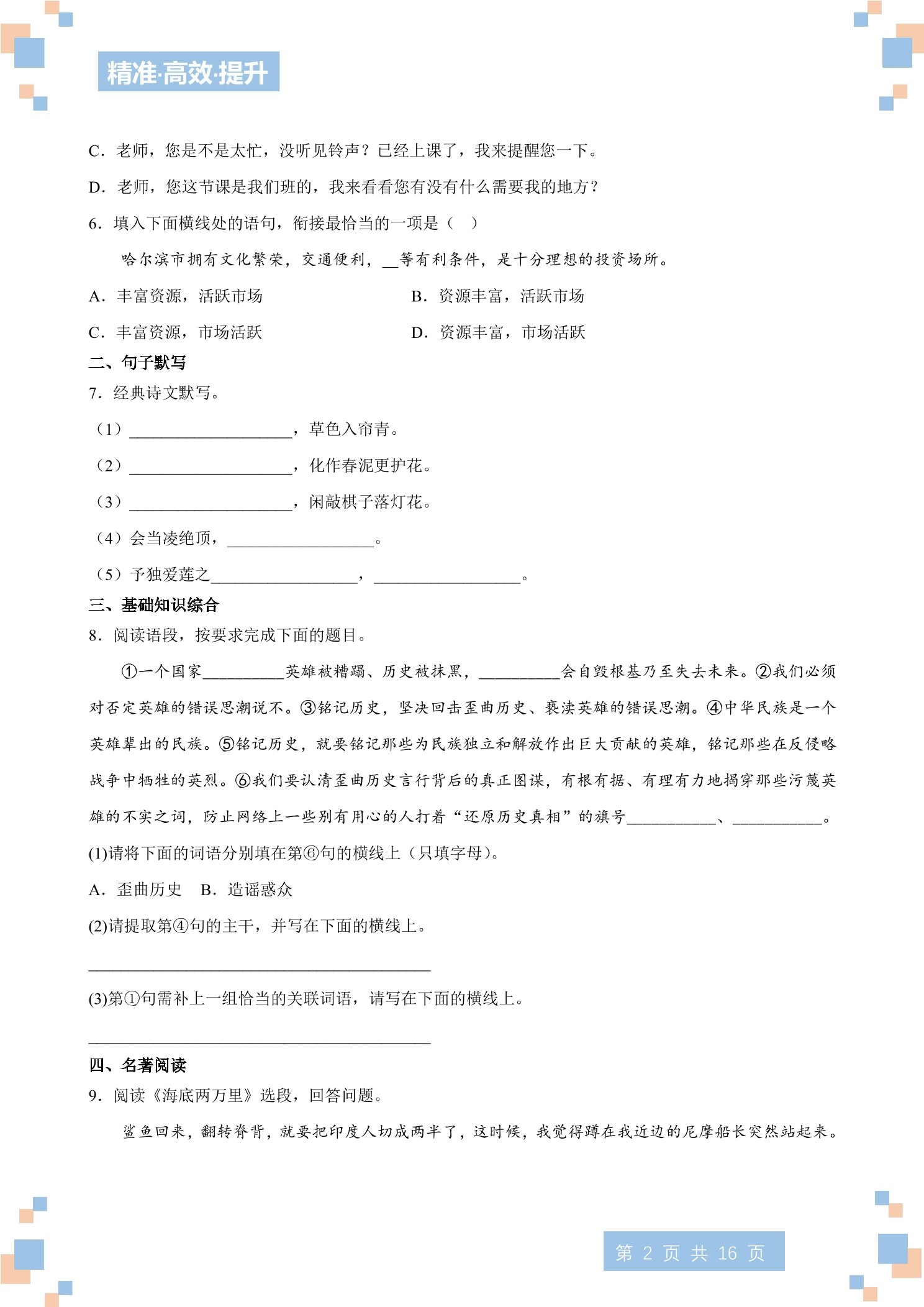 第2单元 闯关必刷06-课外阅读(二)-统编版语文6年级上册