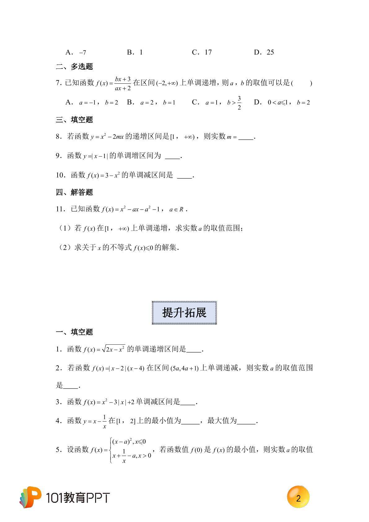 3.2.2 函数的基本性质(二)-黄金讲练:高一数学人教版必修第一册同步课堂(精练)
