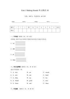 Unit 1 Making friends单元测试 01-人教PEP版(2024)英语3年级上册