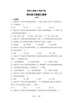 数学人教版4年级下册期末复习真题汇编卷05三角形
