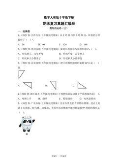 数学人教版5年级下册期末复习真题汇编卷05图形的运动(三)