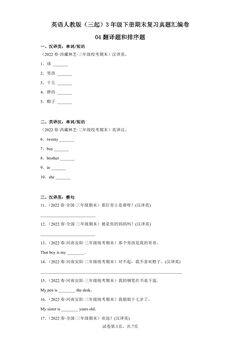 英语人教版(三起)3年级下册期末复习真题汇编卷04翻译题和排序题