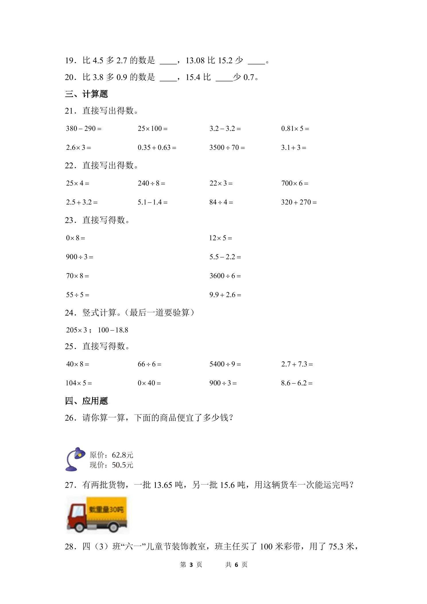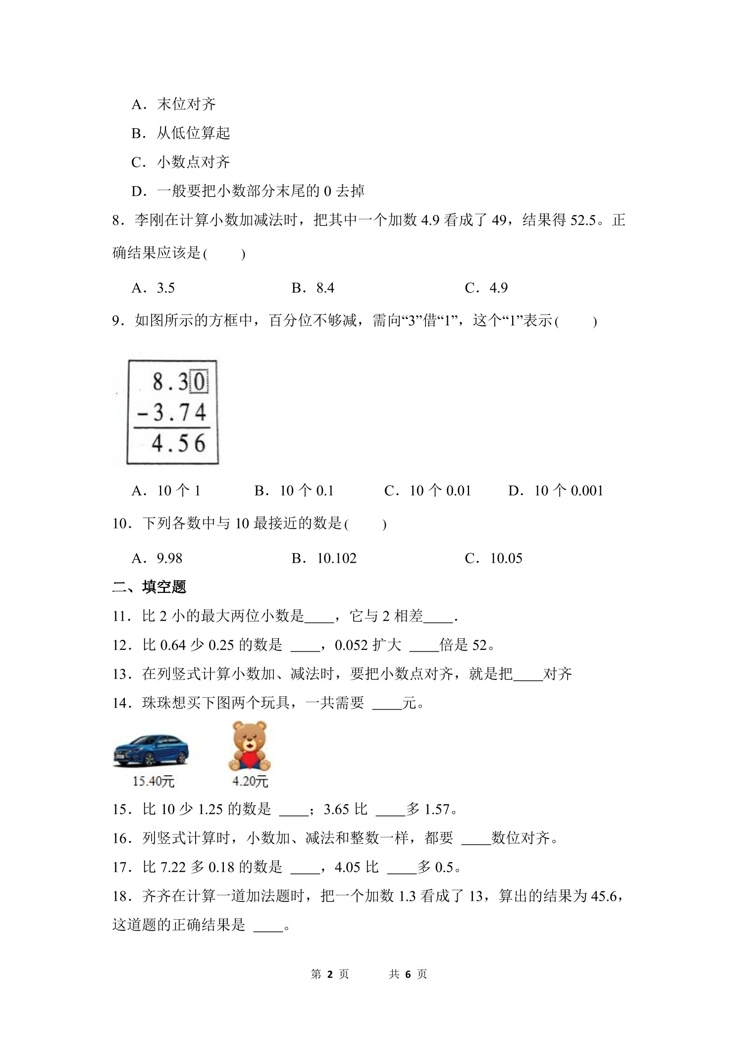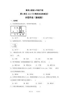 数学人教版4年级下册第6单元 6.2.2小数的加法和减法分层作业(基础版)
