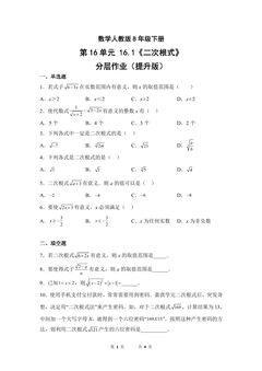 数学人教版8年级下册第16单元16.1二次根式分层作业(提升版)