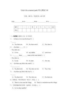 Unit 6 In a nature park 单元测试 01—人教PEP版(2024)英语5年级