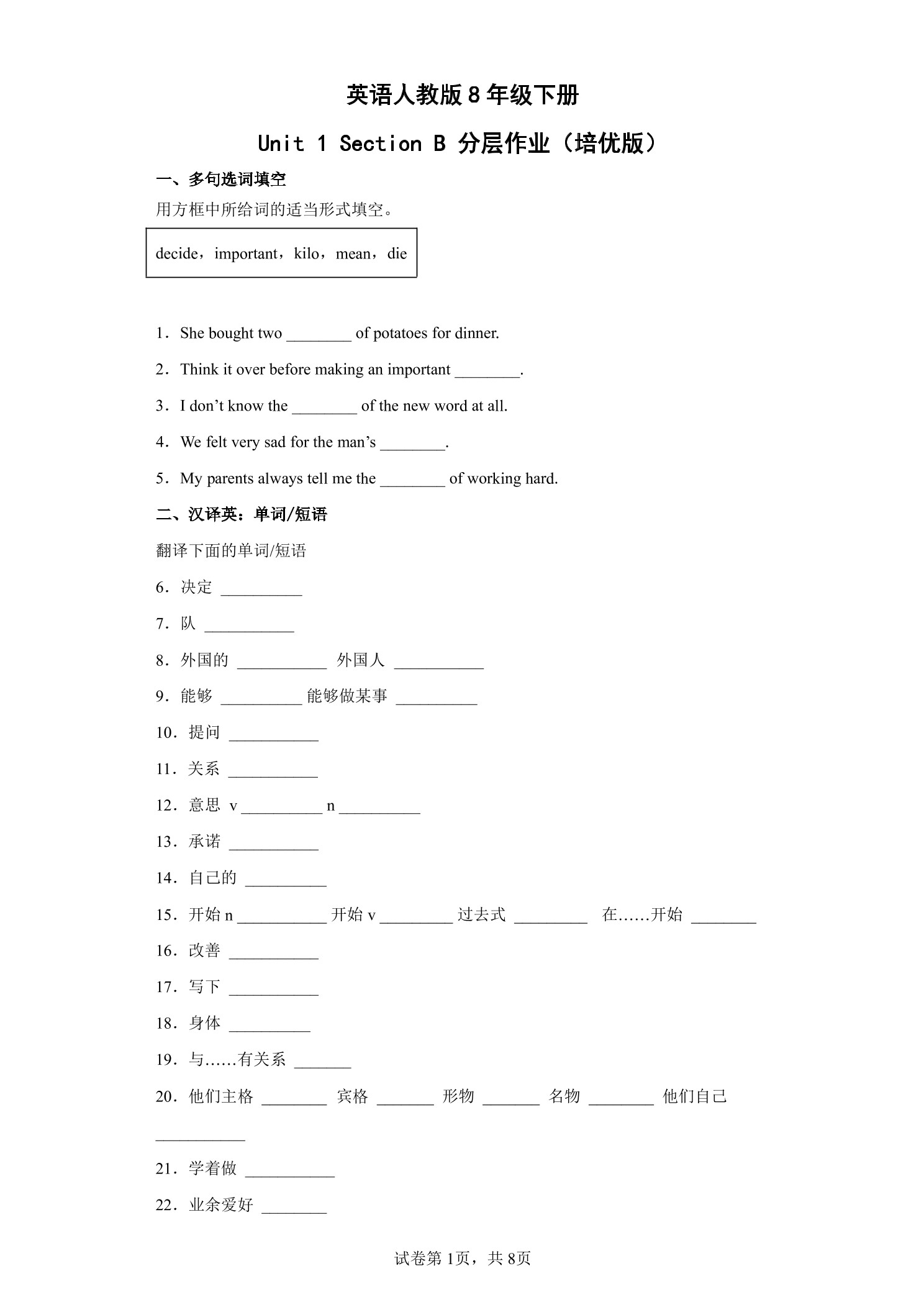 英语人教版8年级下册Unit 1 Section B 分层作业(培优版)