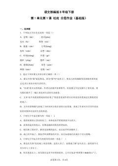 语文部编版8年级下册第1单元第1课社戏分层作业(基础版)