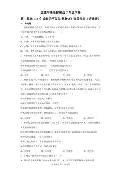 道德与法治部编版7年级下册第1单元1.2《成长的不仅仅是身体》分层作业(培优版)