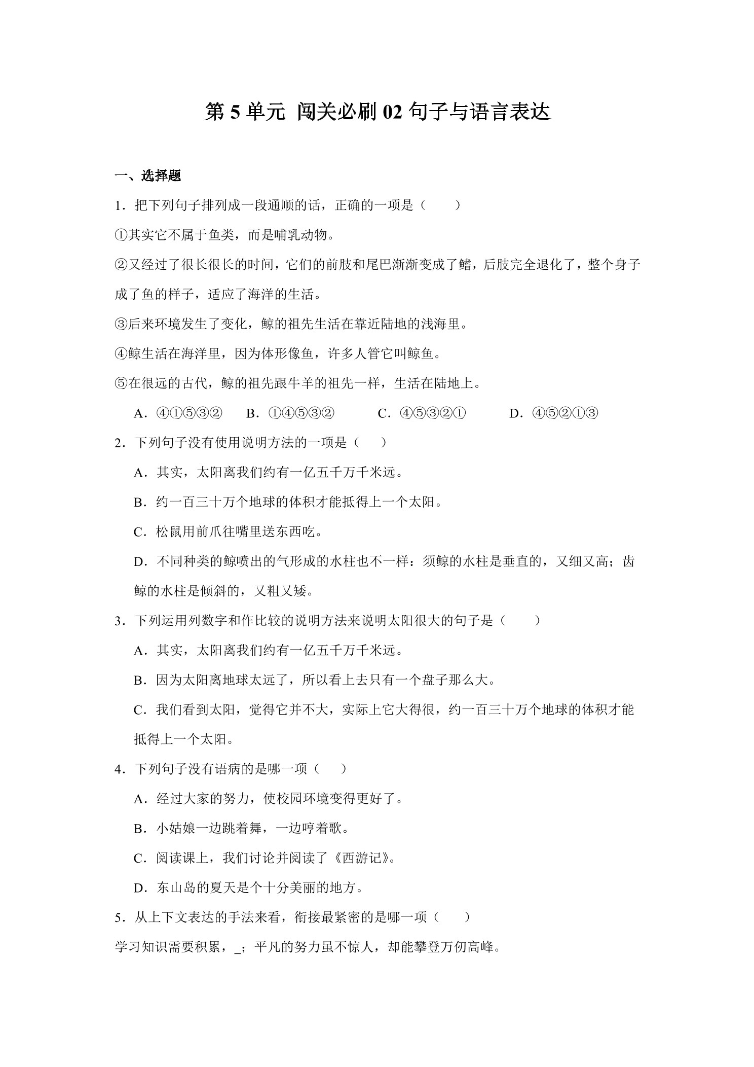 第5单元 闯关必刷02-句子与语言表达-统编版语文5年级上册