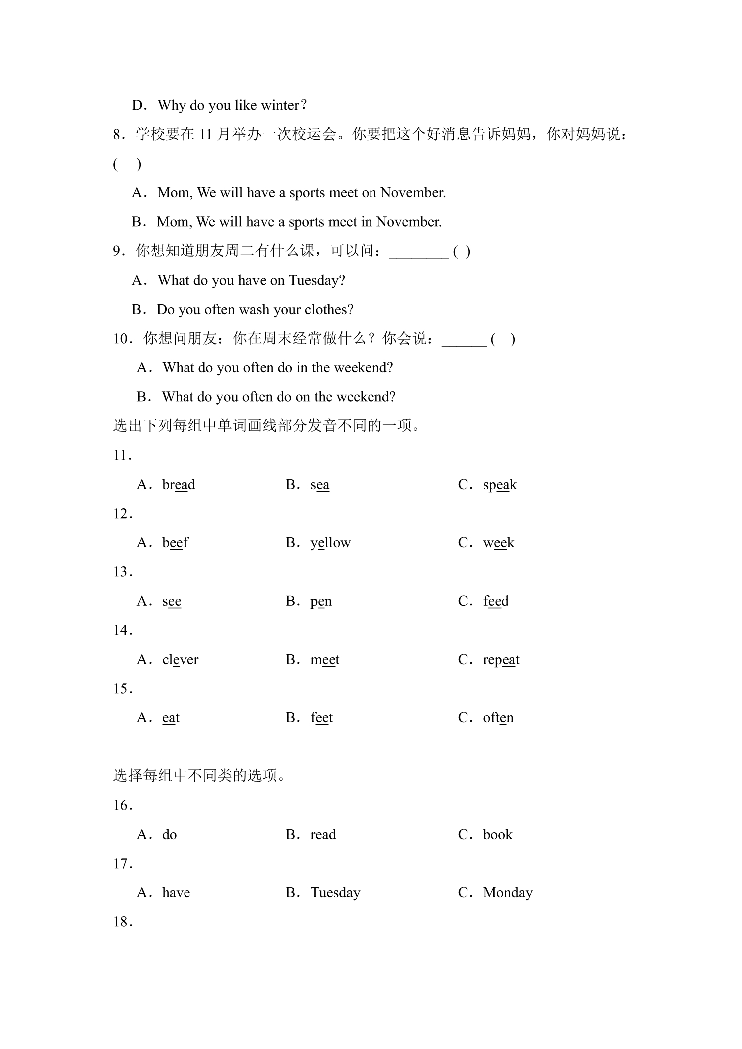 Unit 2 My week 题型专练 02(阅读理解2) -人教PEP版(2024)英语5年级上册
