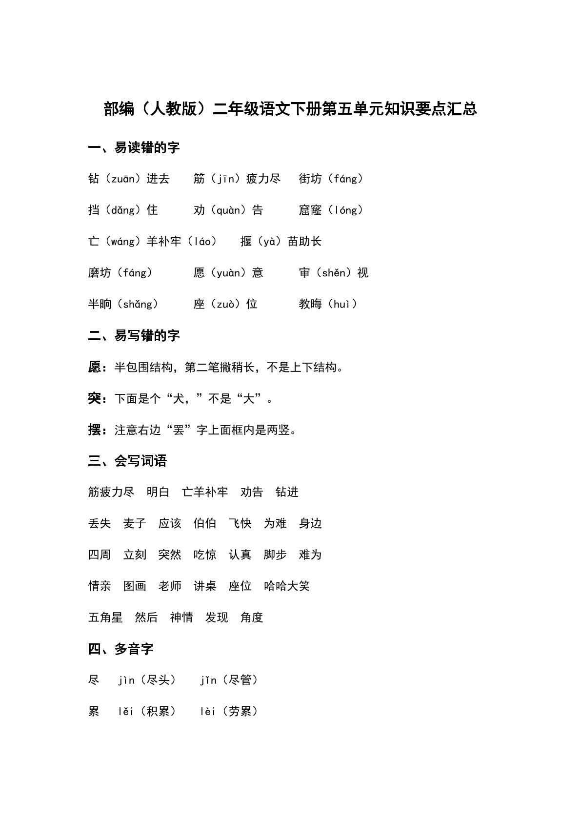 部编(人教版)二年级语文(下册)第五单元知识要点汇总