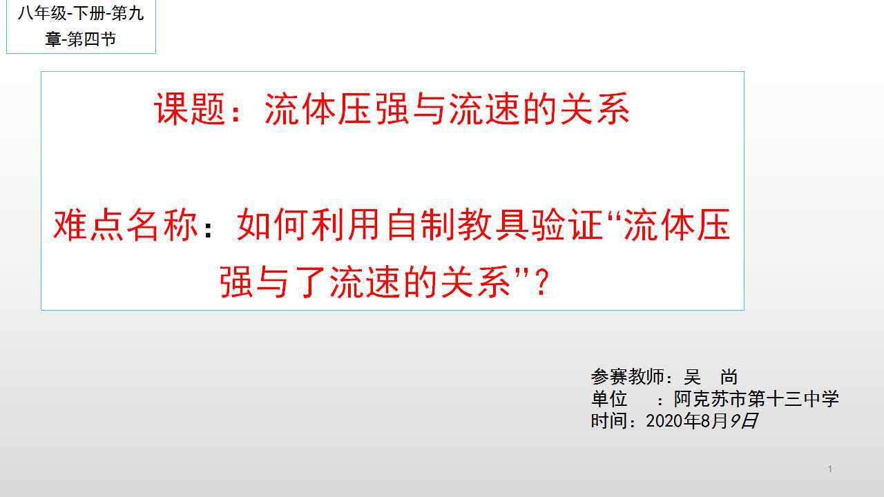 流体压强与流速关系的验证实验