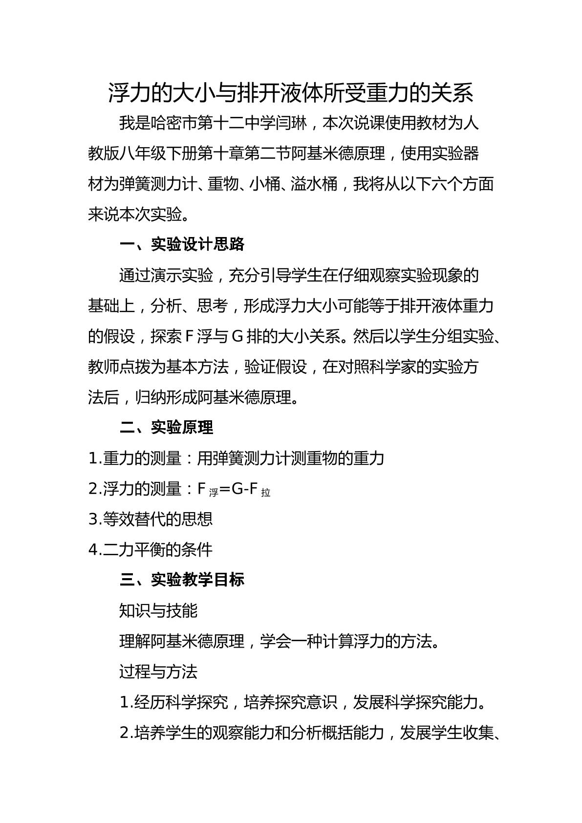 阿基米德原理实验