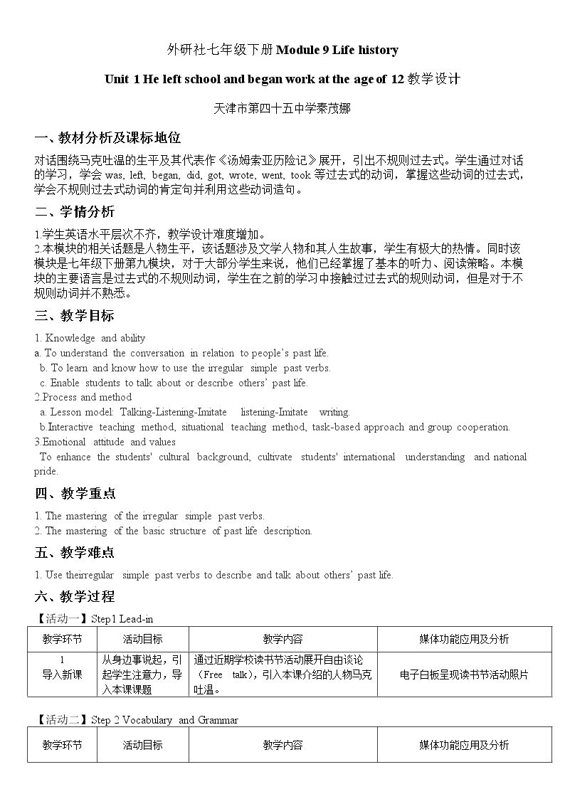 Unit 1 He left school and began work at the age of twelve.
