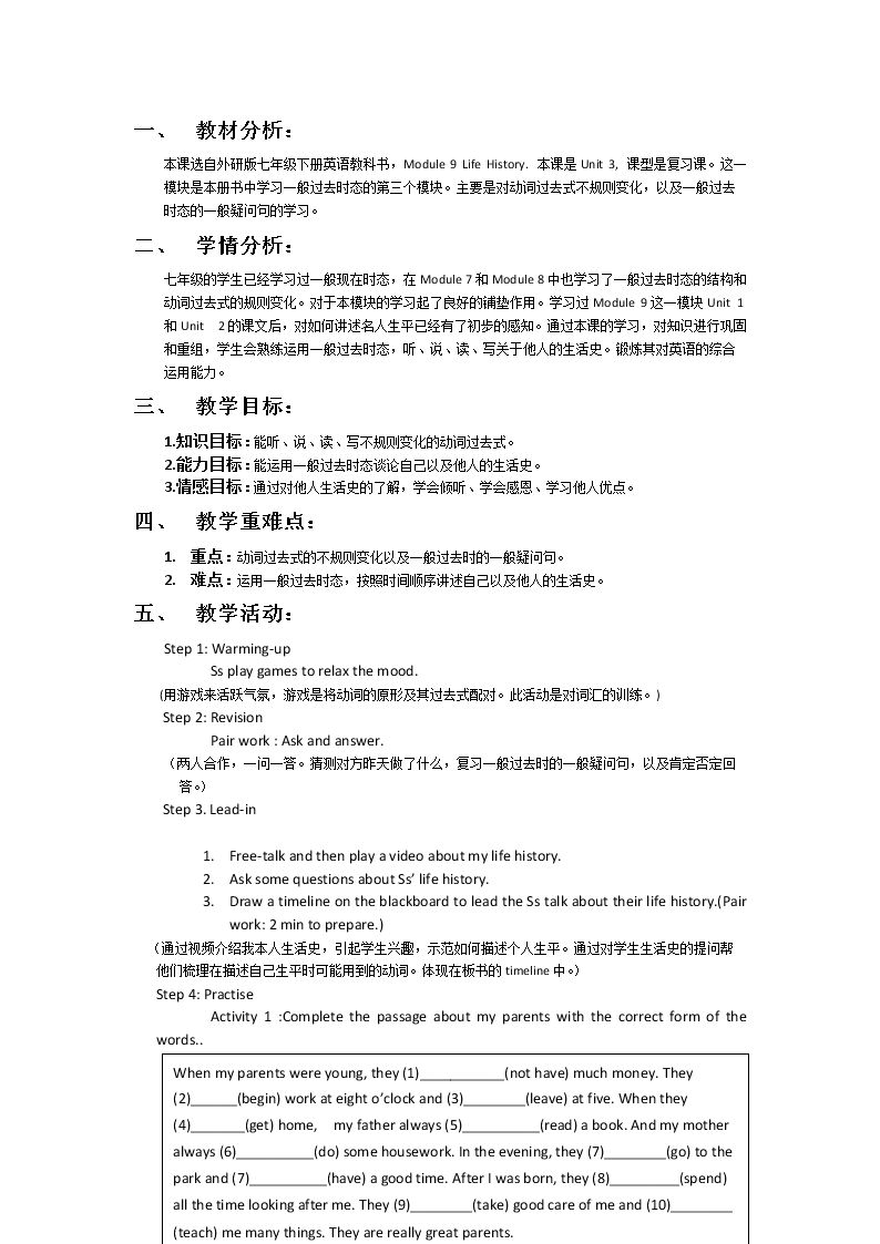Unit 1 I was born in a small village.