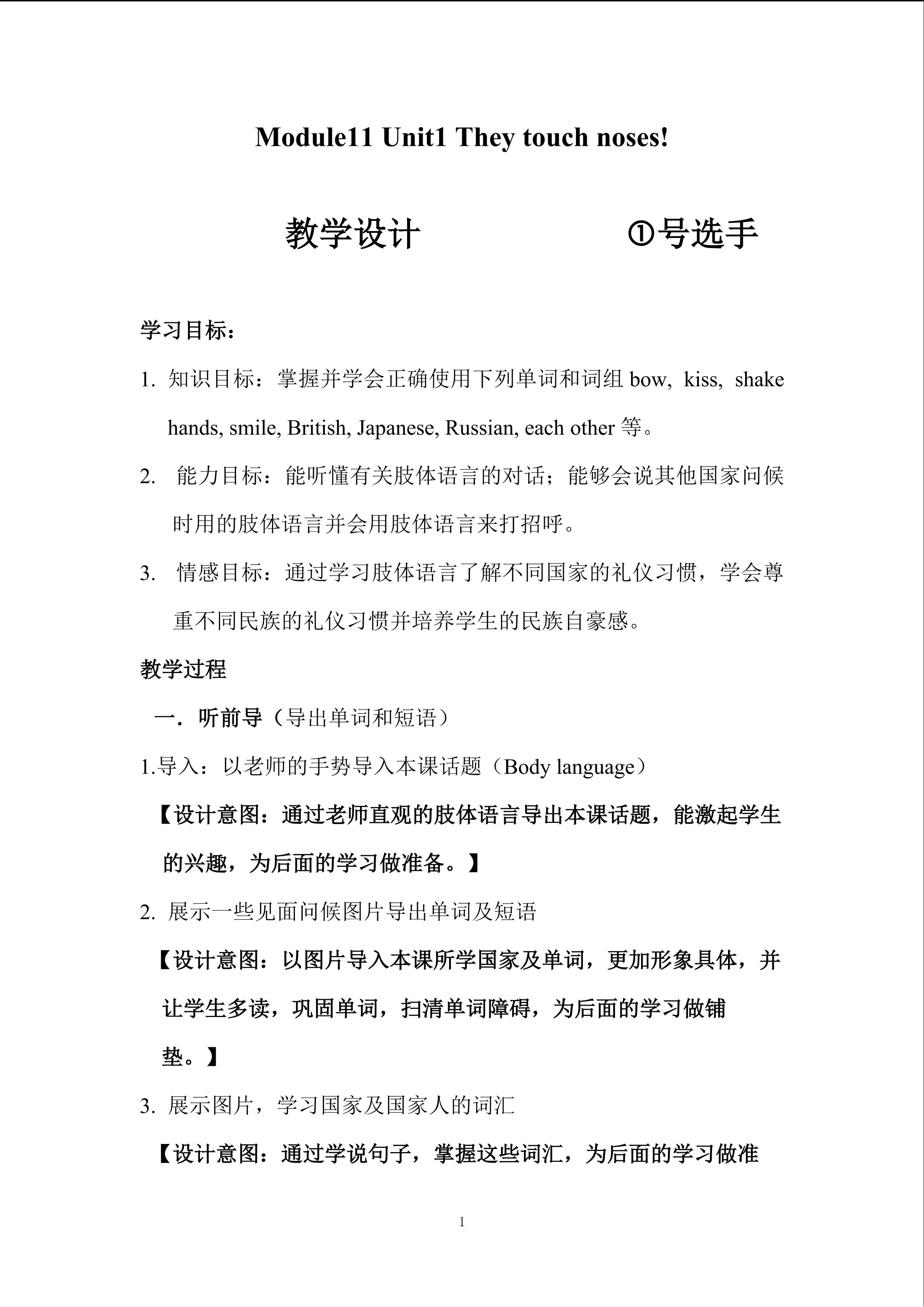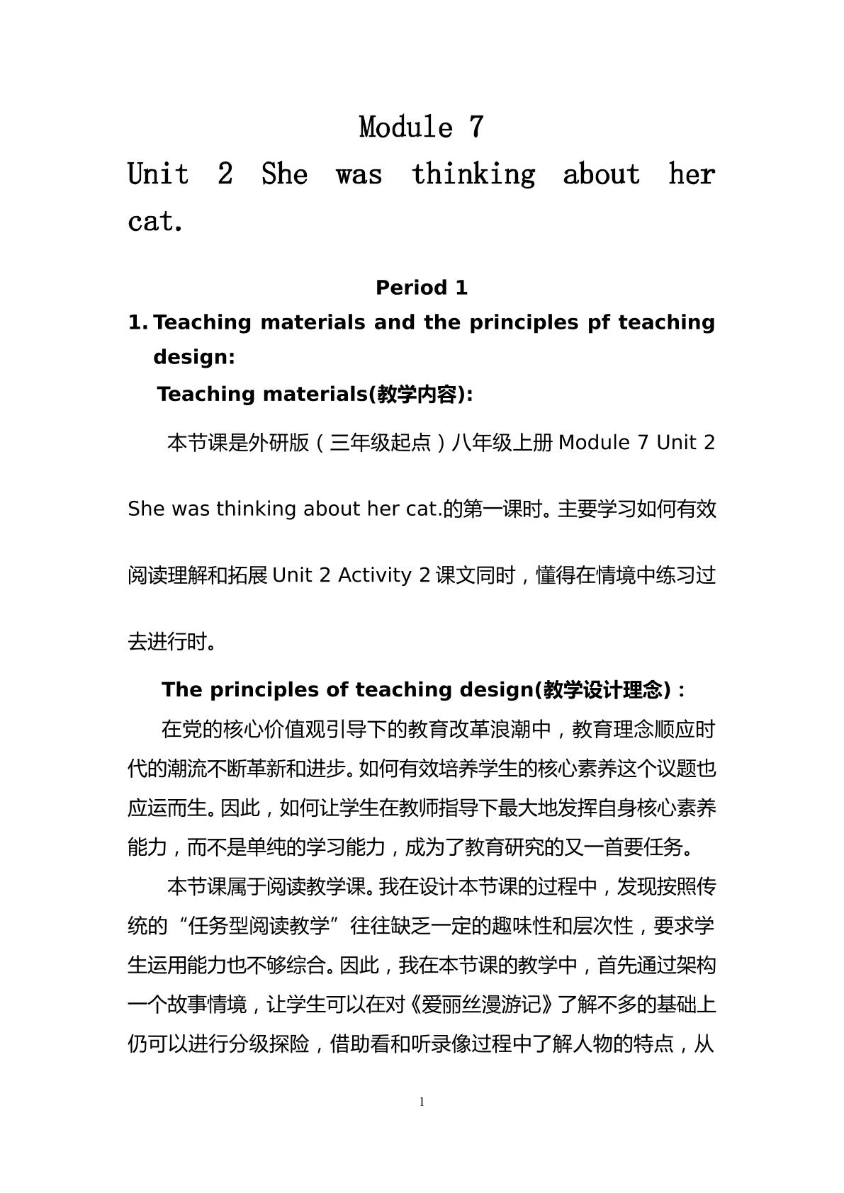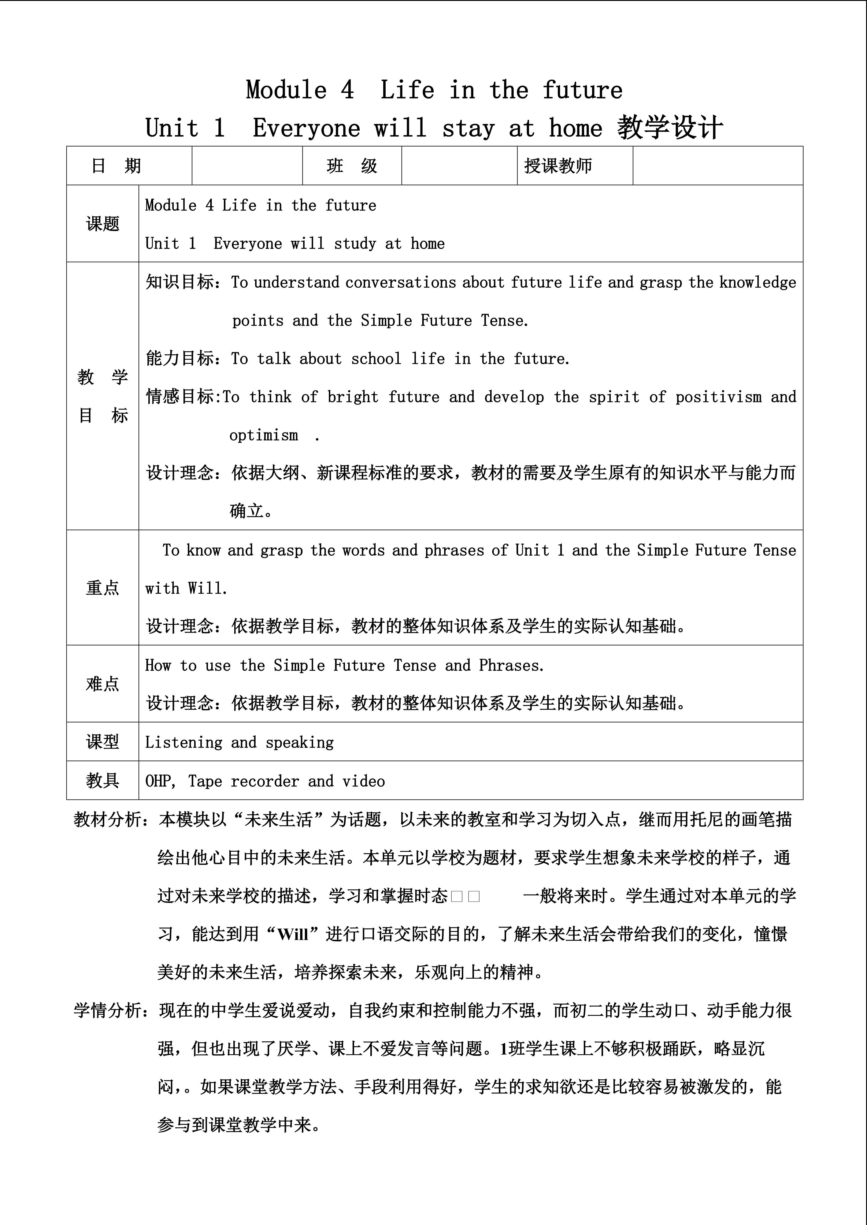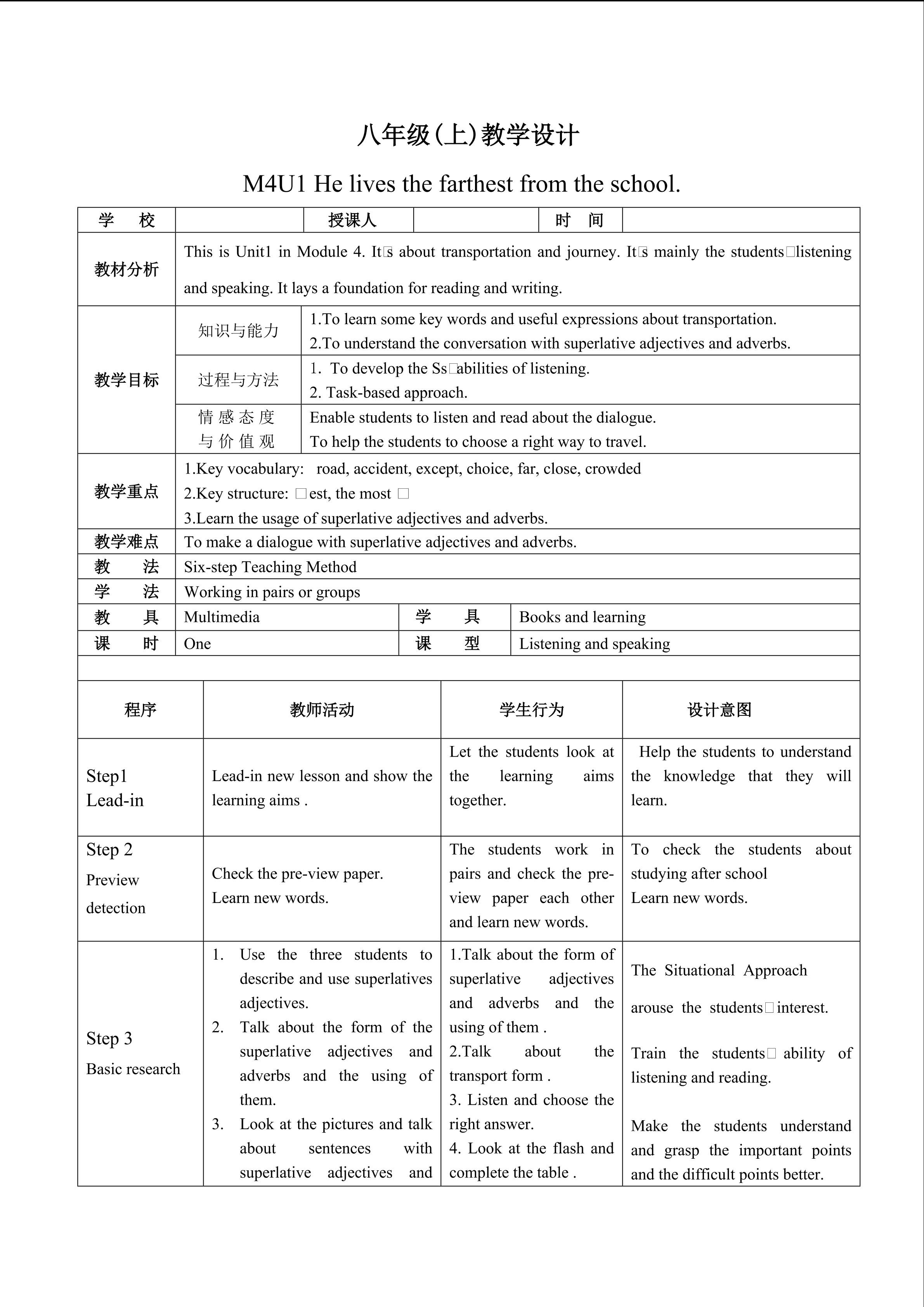 Module 4 unit 1 教学设计