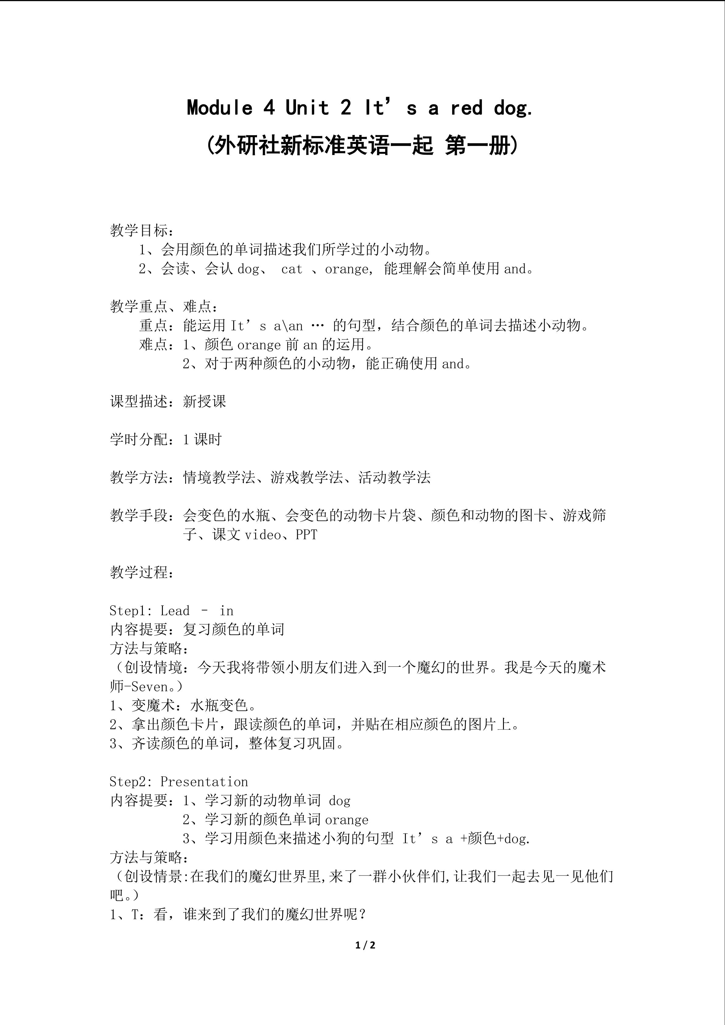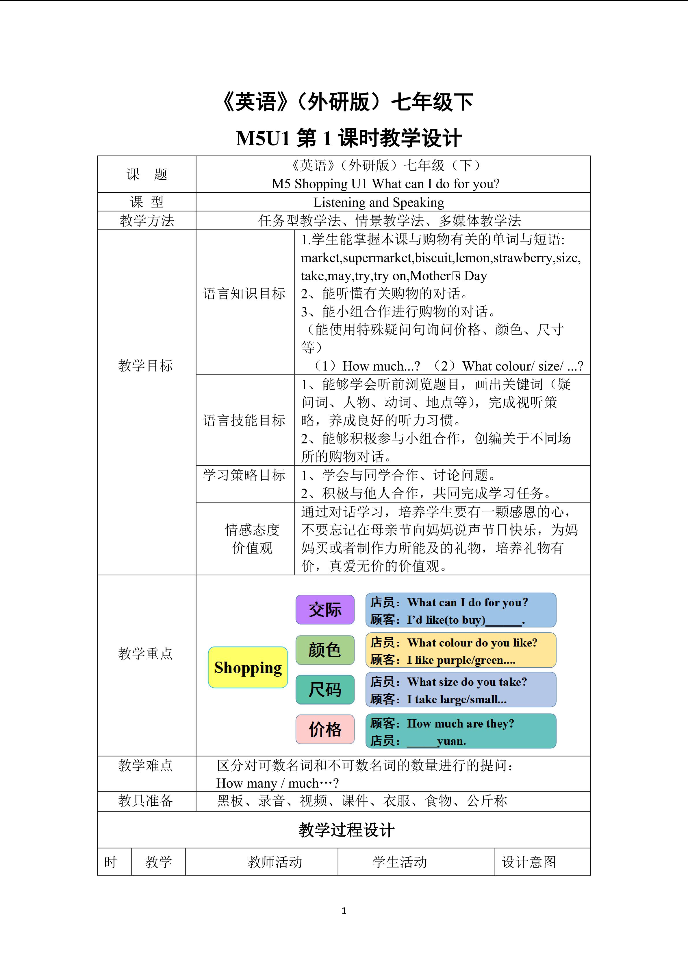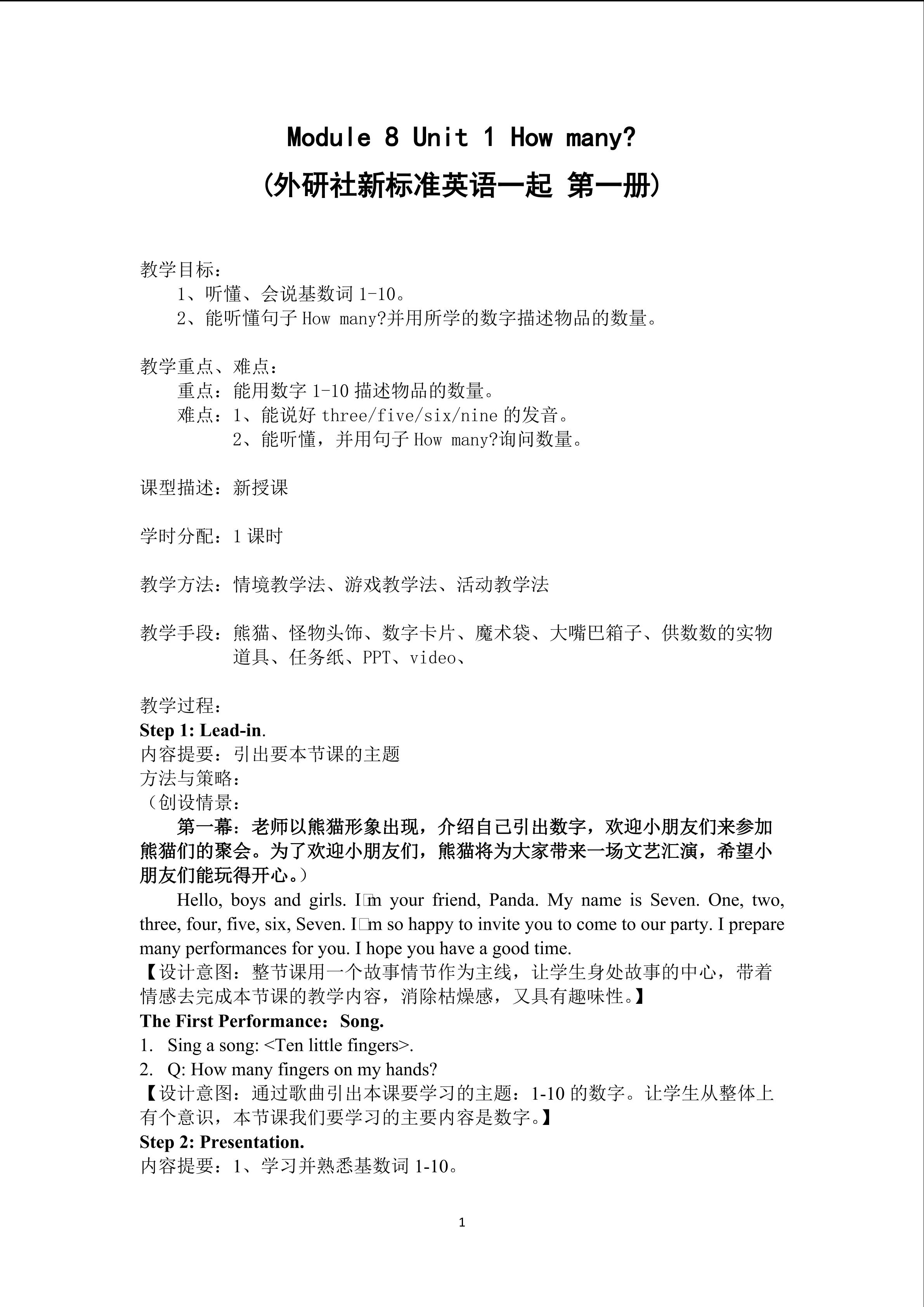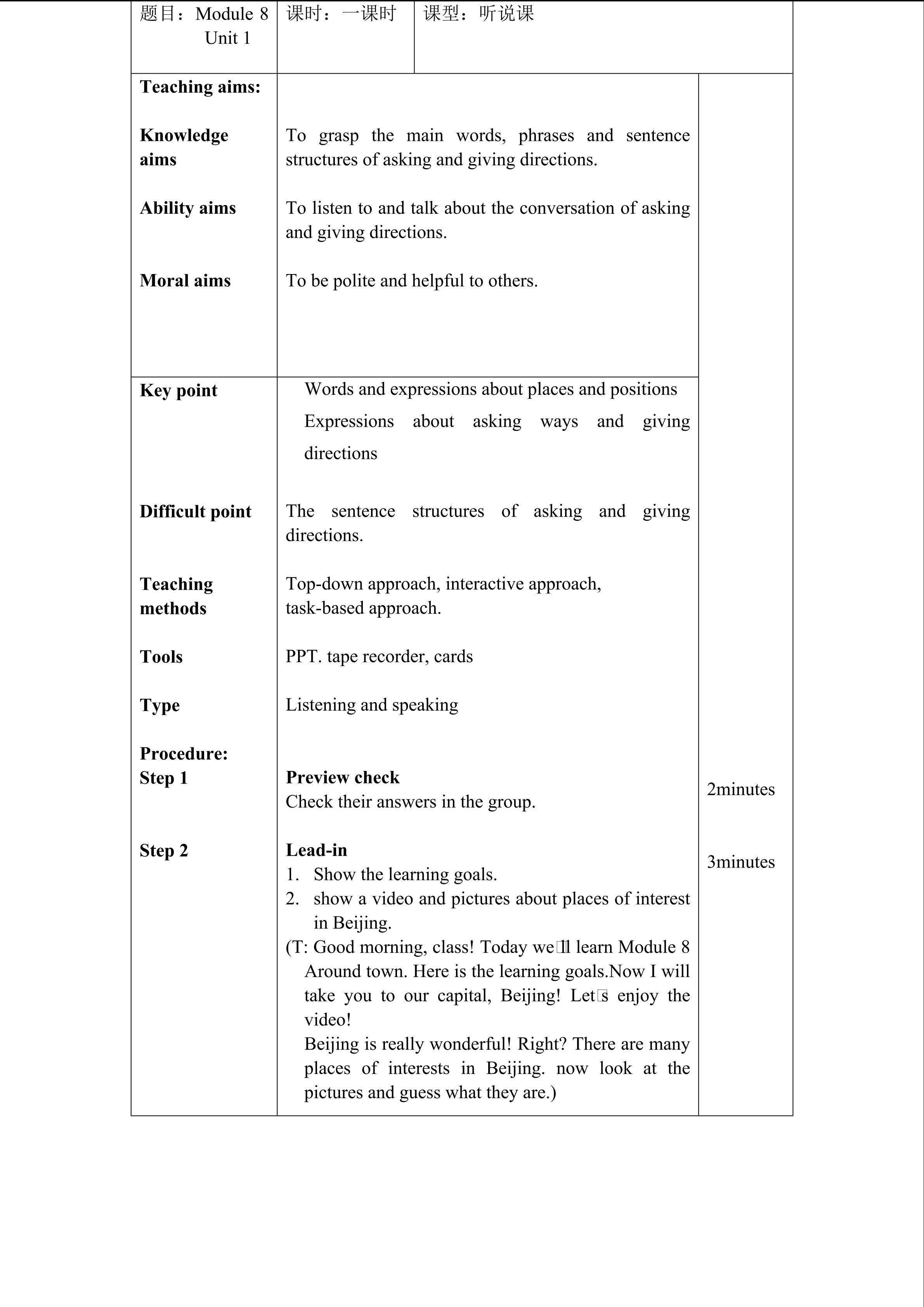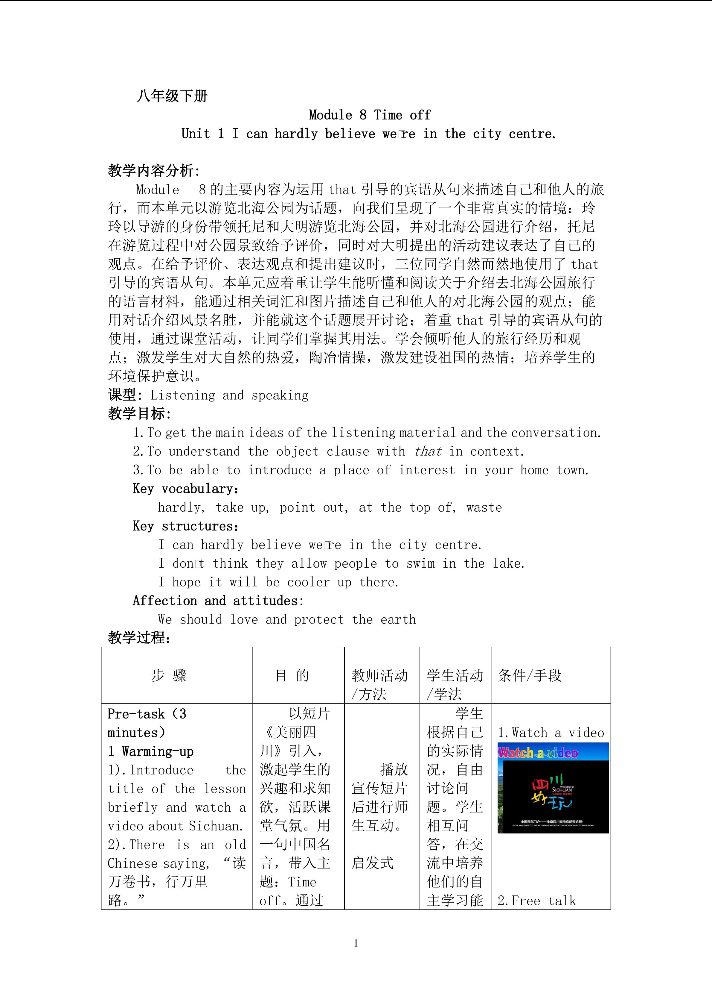 Module 4 unit 1 教学设计