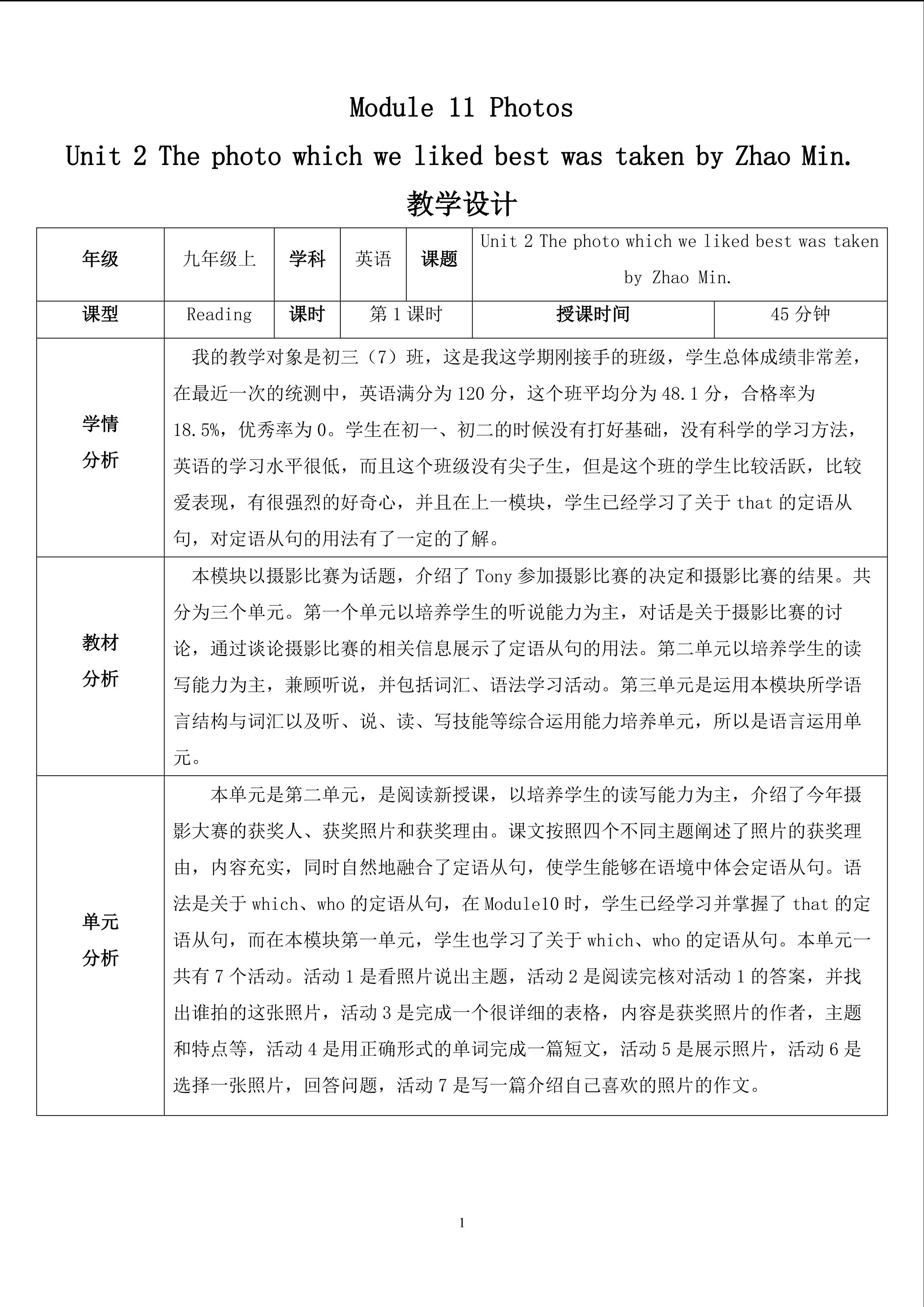 Module11 Photos Unit2教学设计