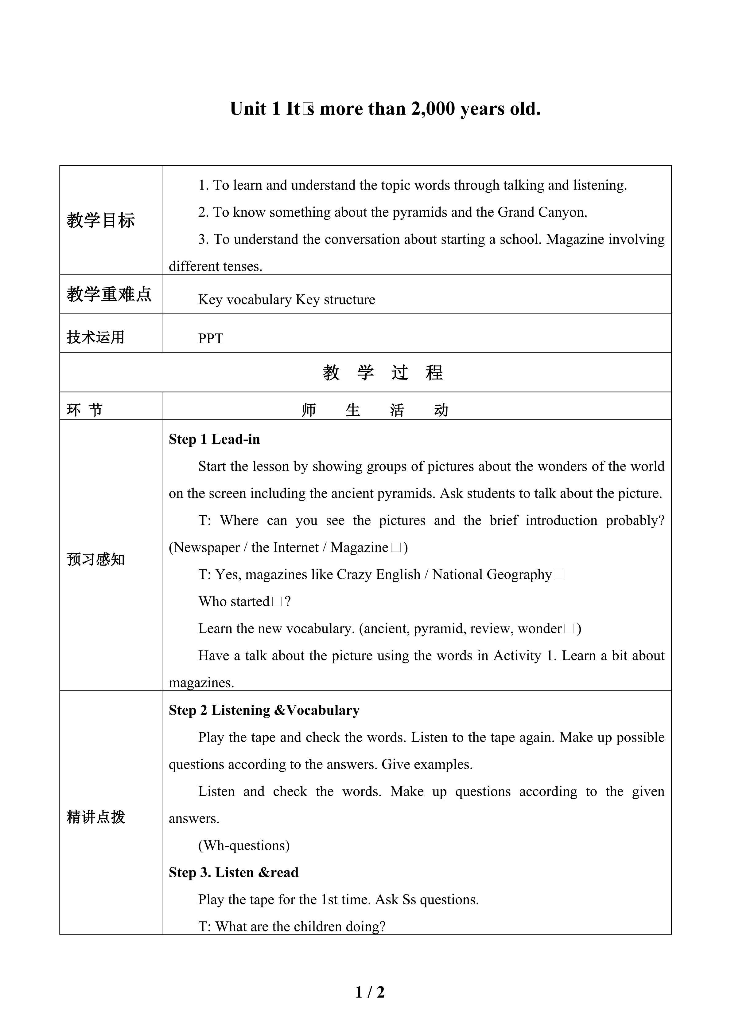Unit 1 It's more than 2000 years old.