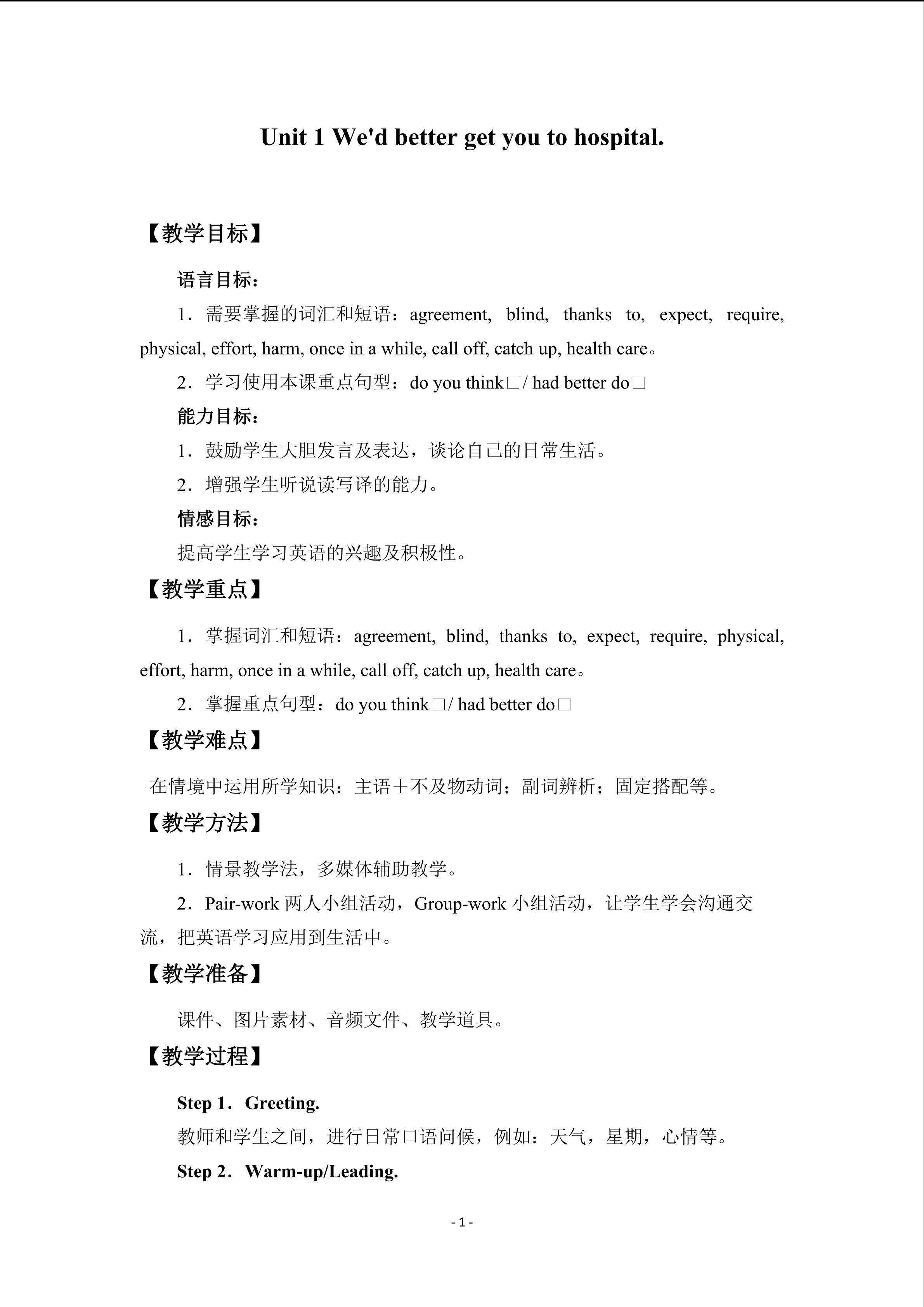 Unit 1 We'd better get you to hospital._教案1